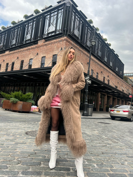 Inez Suede Shearling Coat