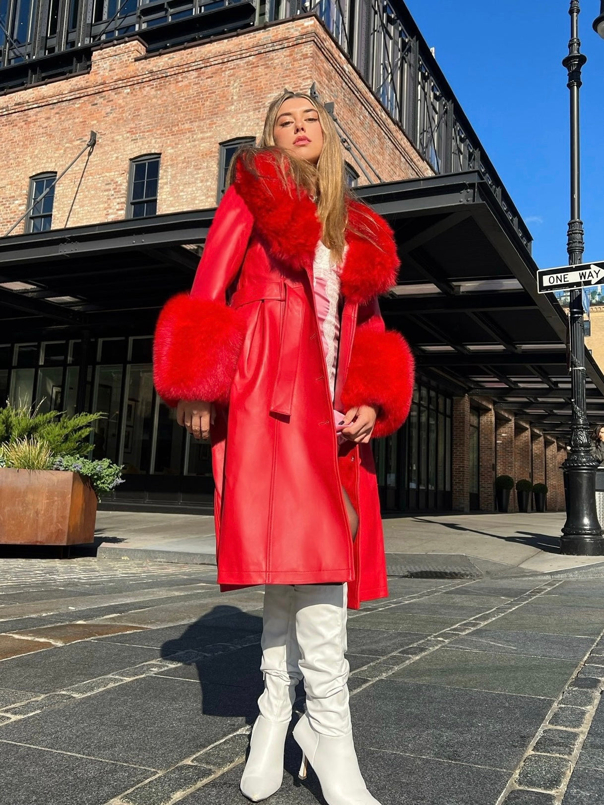 Introducing our Jojo coat that’s guaranteed to keep you stylish and warm all season long. Features removable shearling collar and cuffs for ultimate versatility. Matching belt also included. As each piece is handmade to order, please allow 3-4 weeks for delivery.