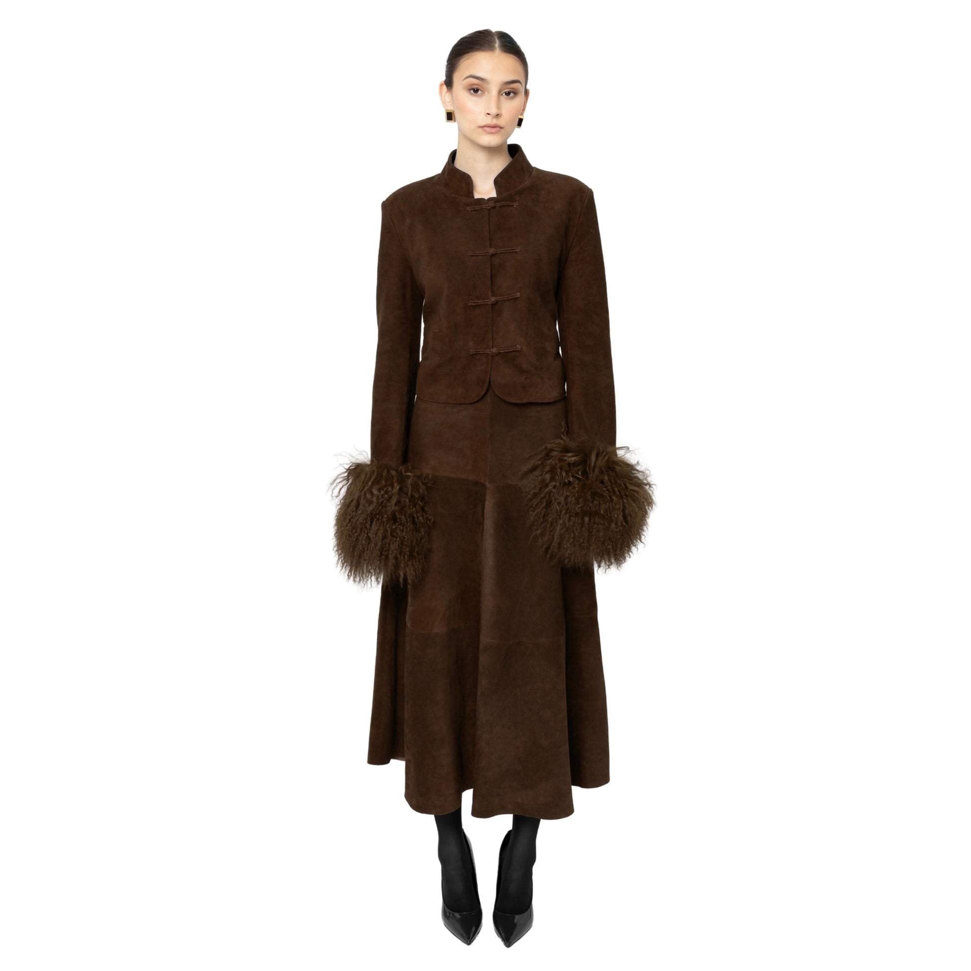 Discover our Alara suede maxi skirt, crafted from luxurious, rich suede. Perfect to wear with a white tee or pair seamlessly with the matching Leighton suede jacket as a set. As each piece is handmade to order, please allow 2-3 weeks for delivery.