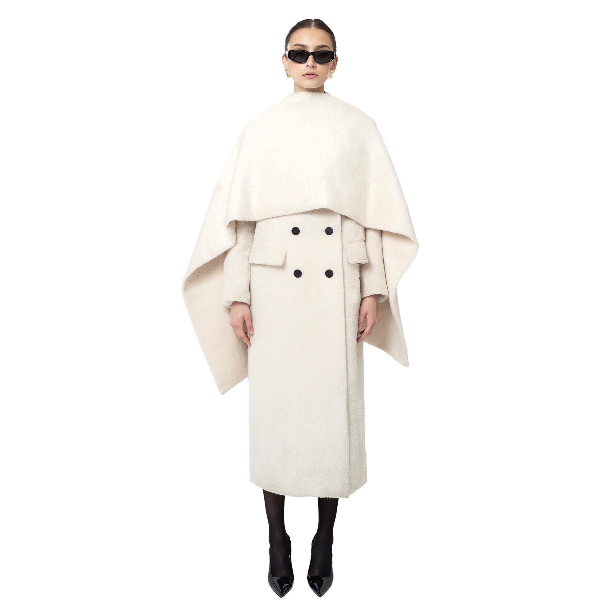 Introducing the ultimate cape coat that’s guaranteed to keep you stylish and warm all season long. Crafted with double faced alpaca wool in a stunning cream colour. As each piece is handmade to order, please allow 3-4 weeks for delivery.