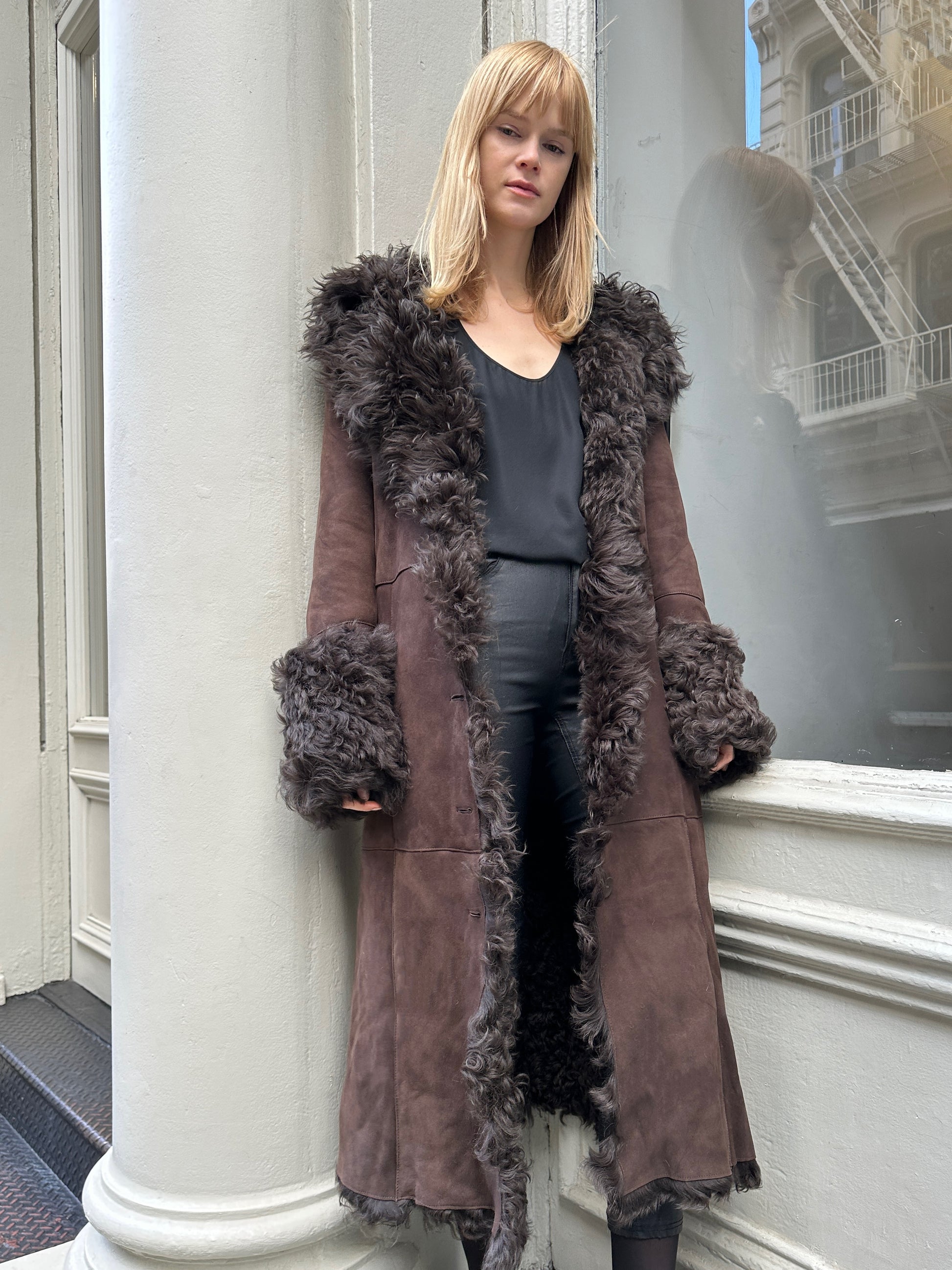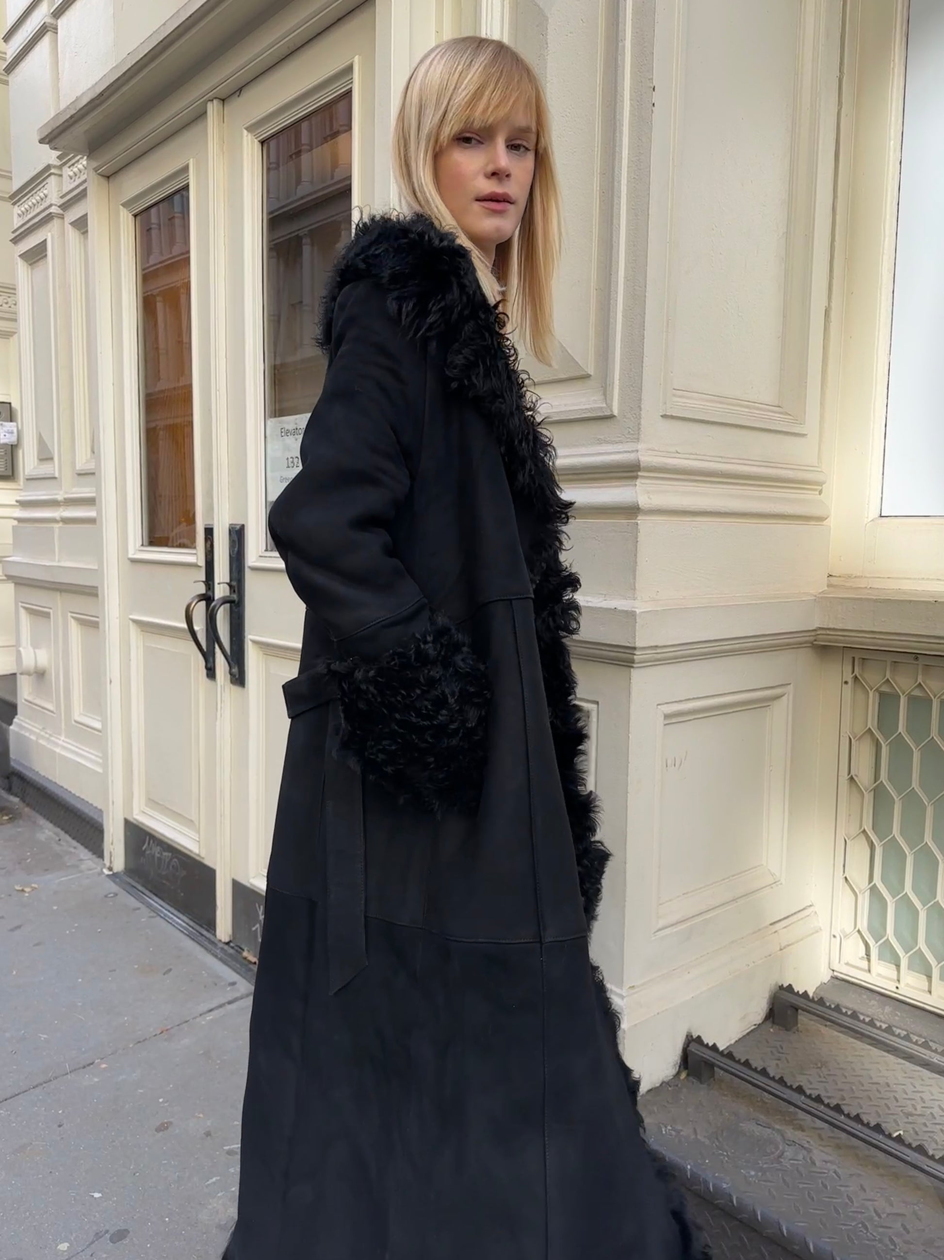 Wrap yourself in timeless sophistication this season with the ultimate statement coat. Features luxurious Tigrado shearling on the interior and exterior trim with soft, genuine suede. As each piece is handmade to order, please allow 2-3 weeks for delivery.