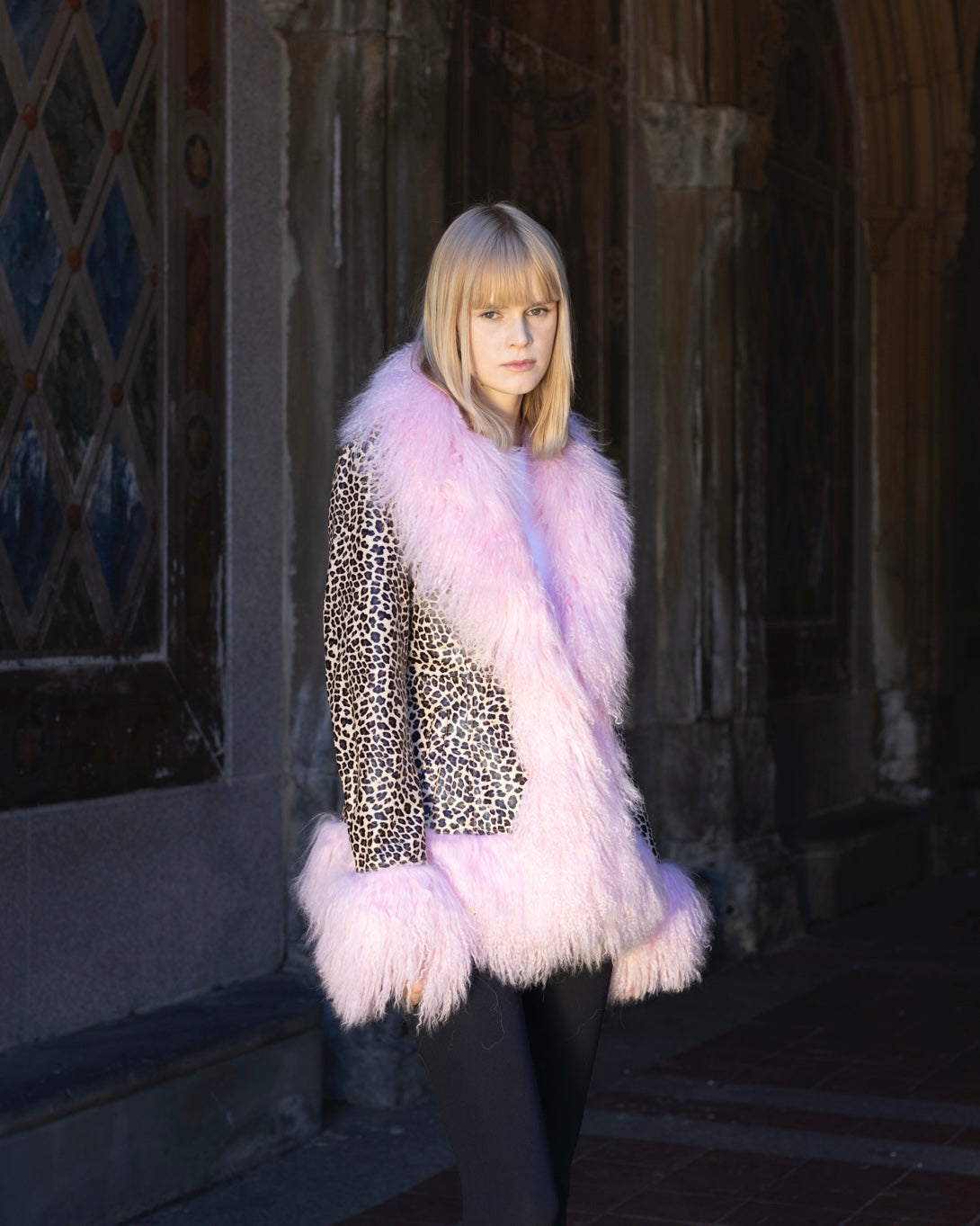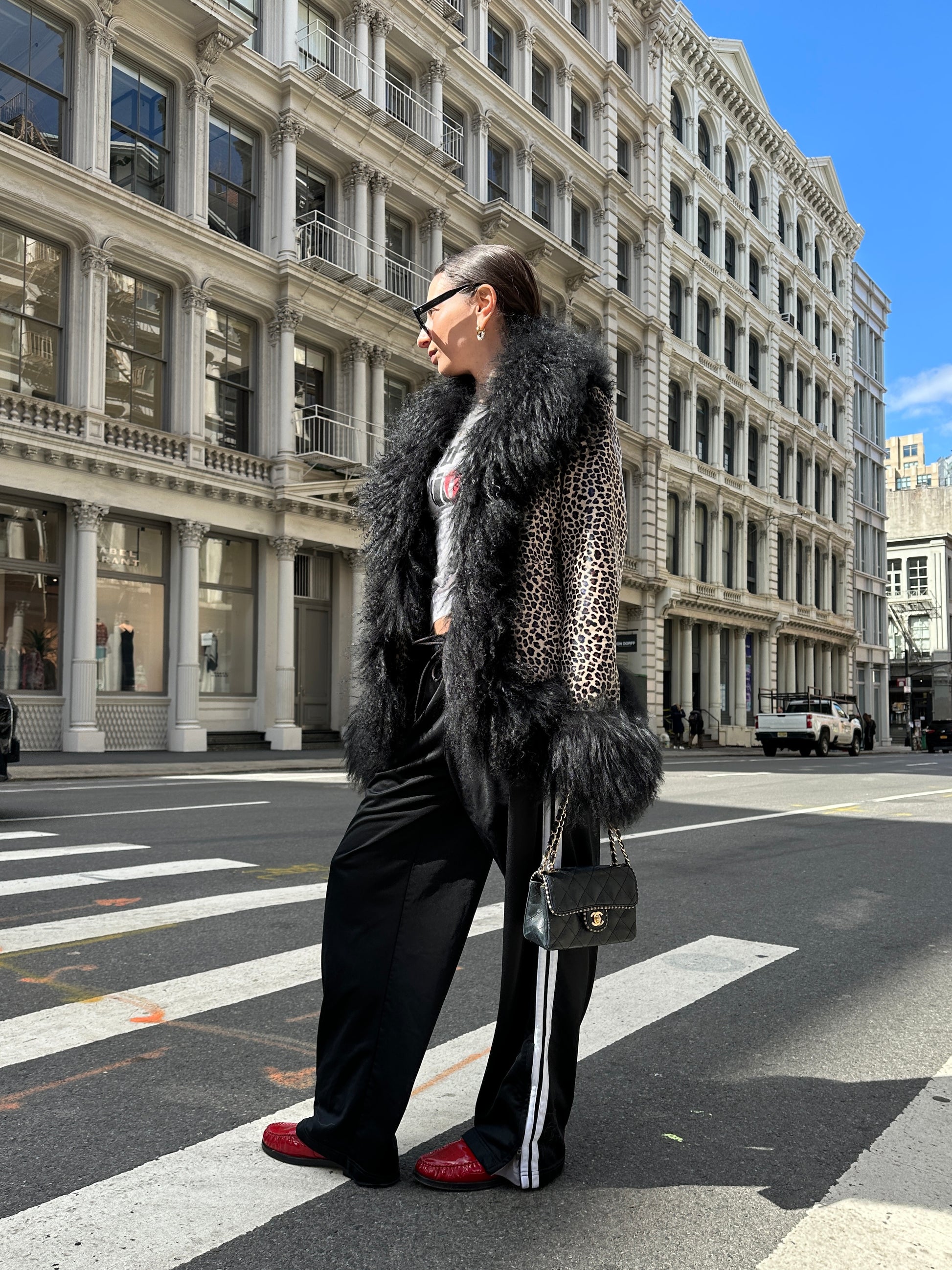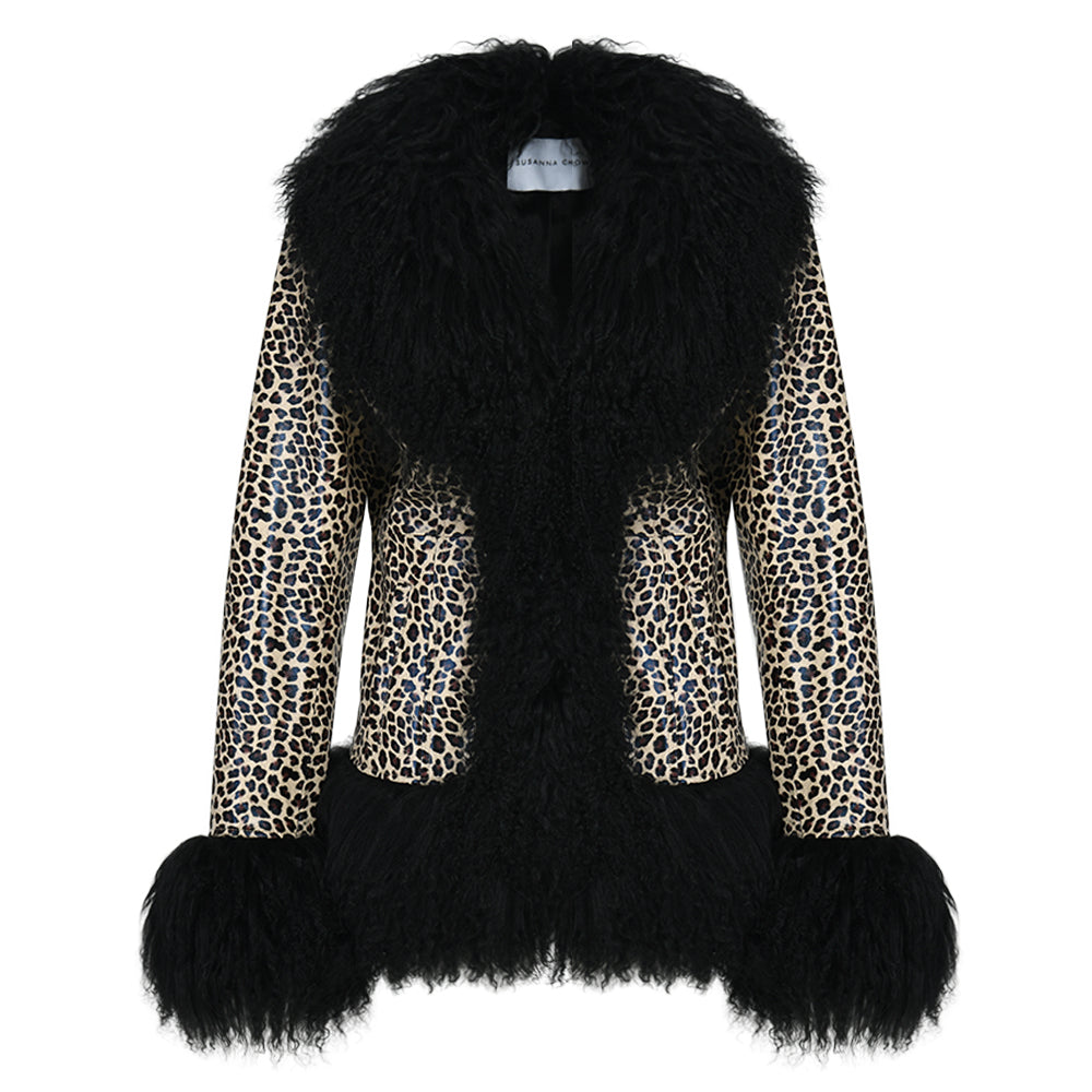 Dorothy Leopard Leather Shearling Coat