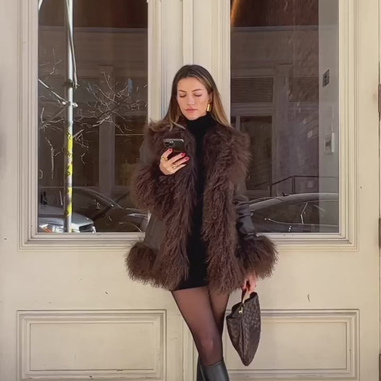 Features the softest shearling collar with exterior slip pockets. Perfect to pair with a dress or a tee with denim jeans. The options are endless with this dreamy Afghan-inspired coat that is truly so sophisticated yet versatile and timeless! As each piece is handmade to order, please allow 3-4 weeks for delivery.