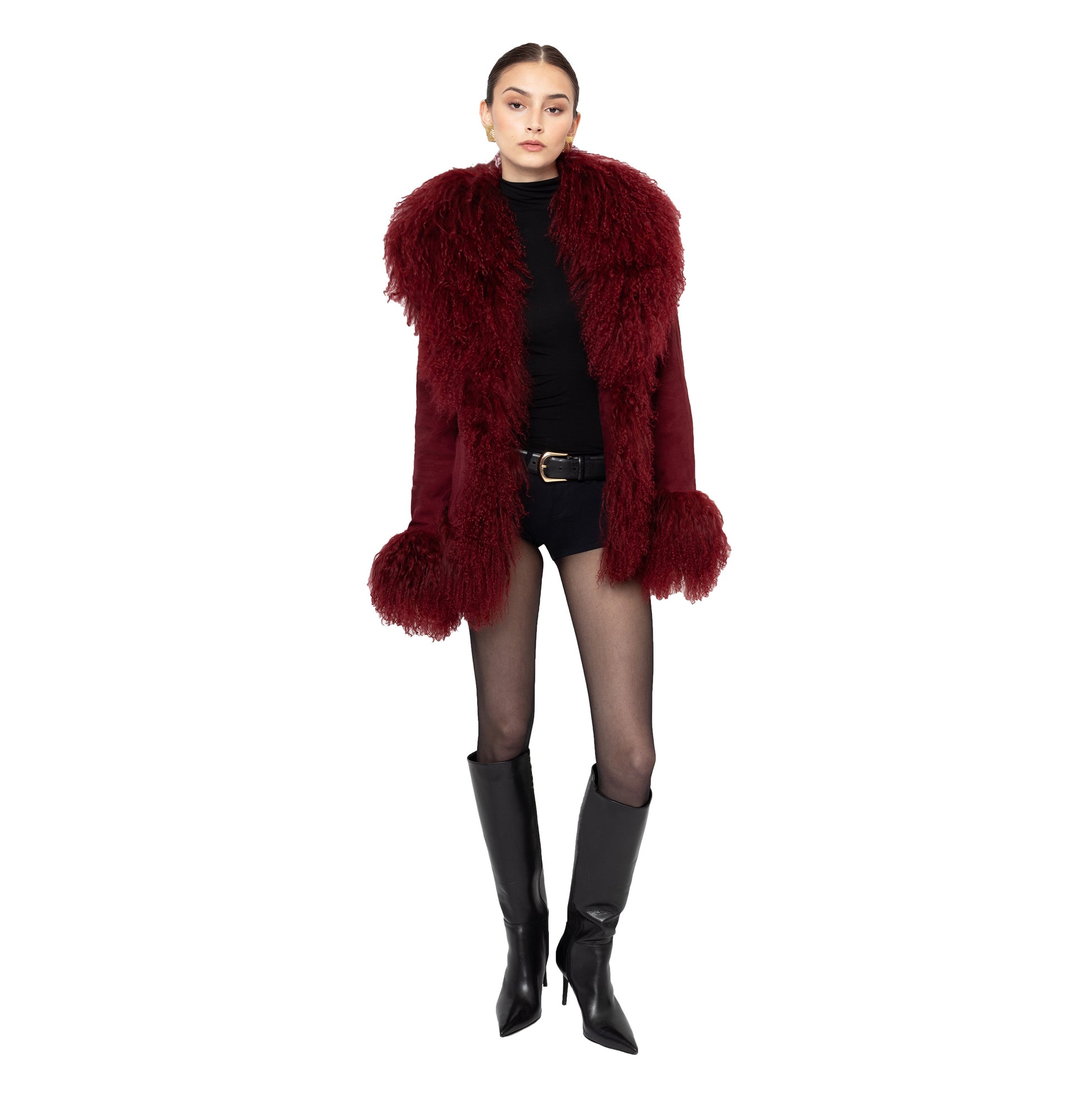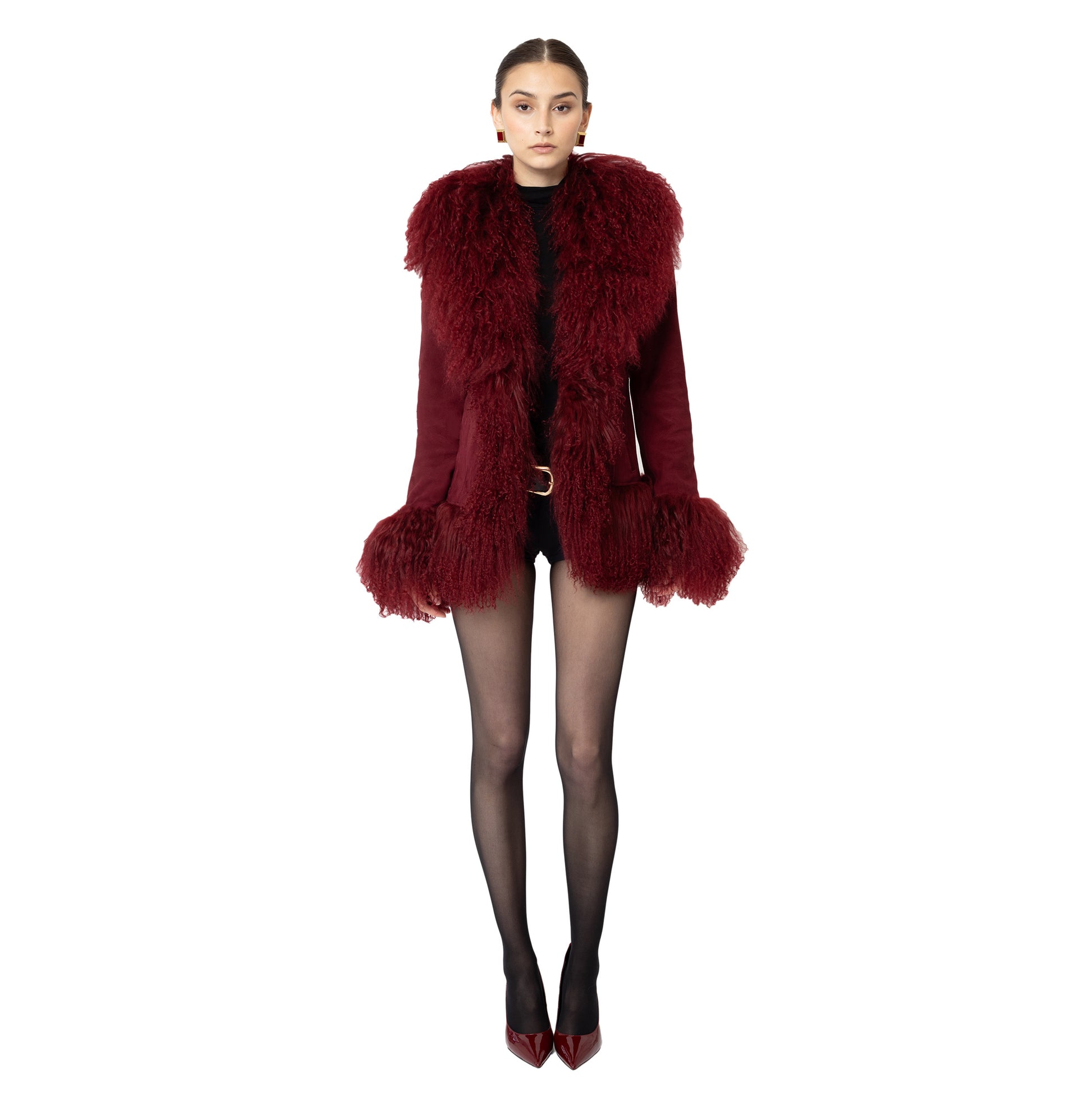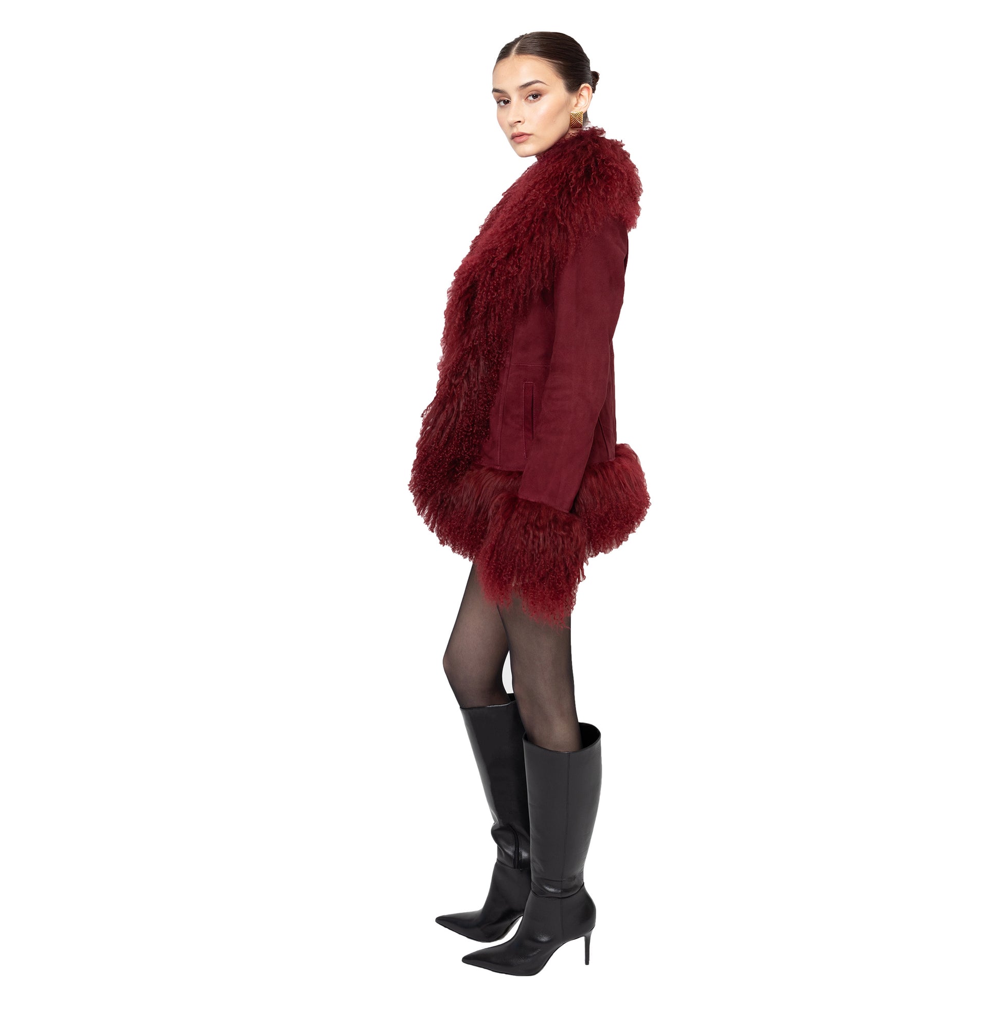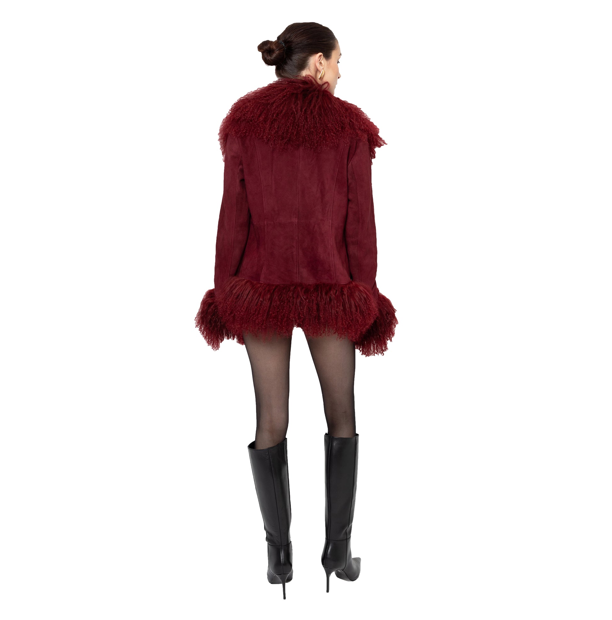 Crafted in premium suede with luxurious Mongolian shearling trim collar. Perfect to pair with a dress or a tee with denim jeans, the options are endless with this dreamy Afghan-inspired coat that is truly so sophisticated yet versatile and timeless! As each piece is handmade to order, please allow 3-4 weeks for delivery.