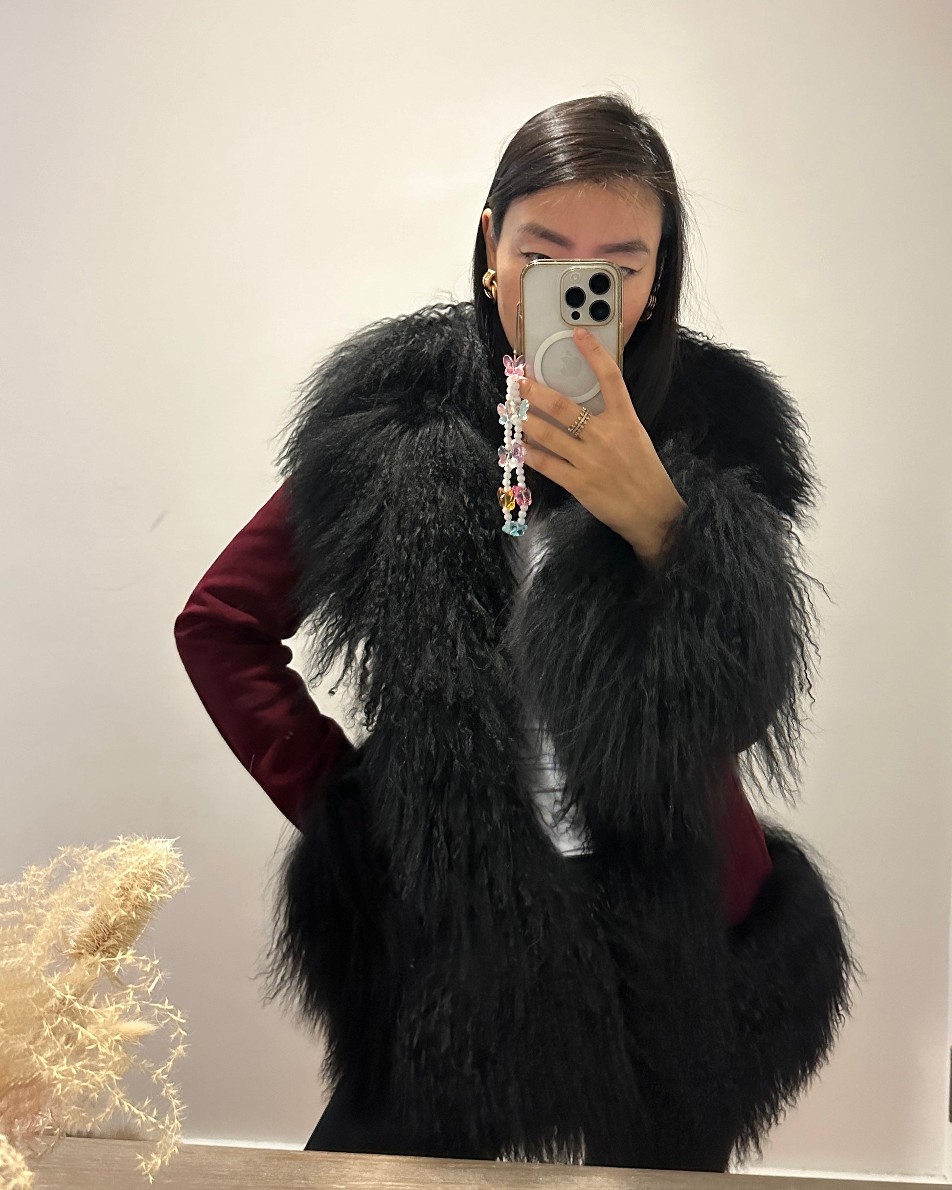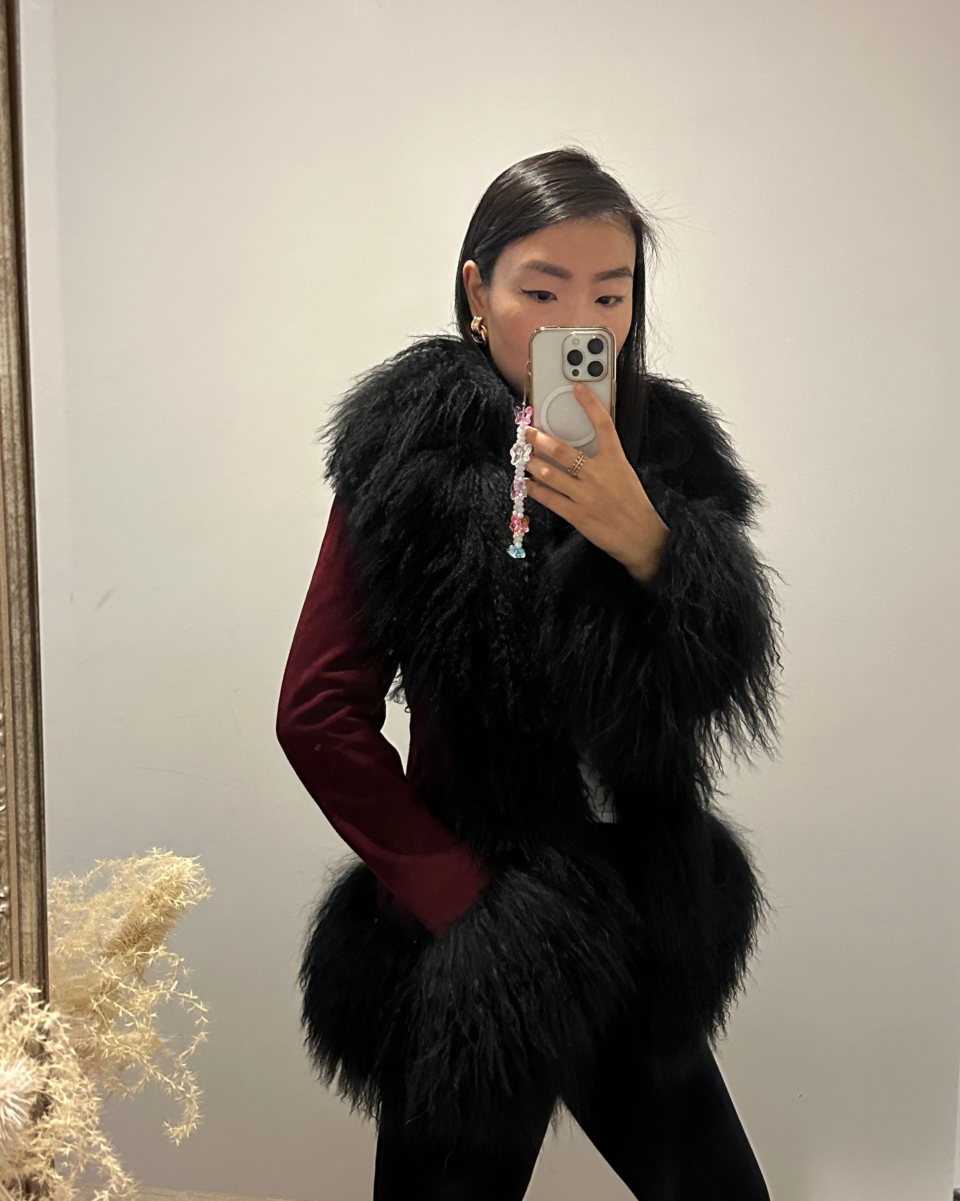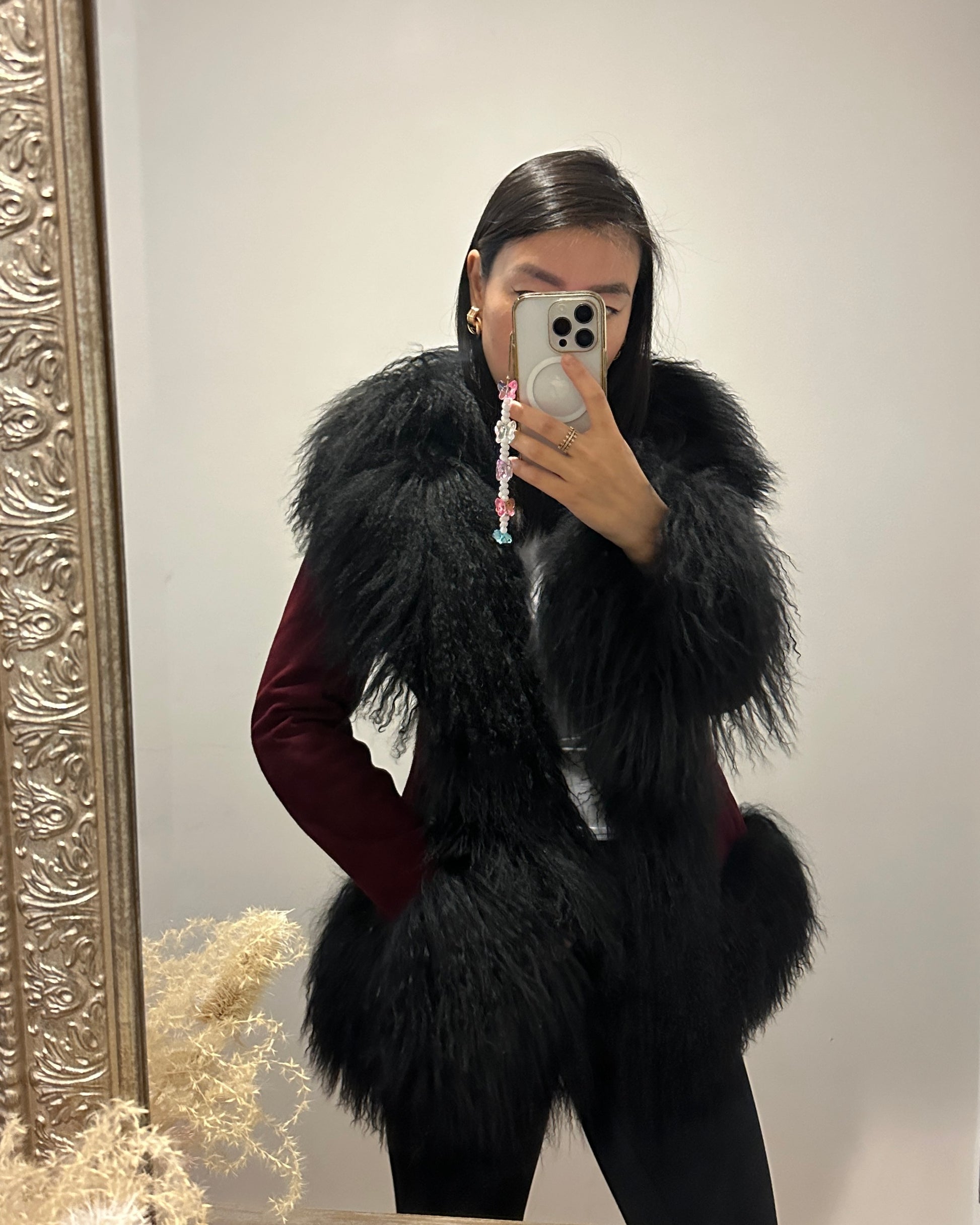 Crafted in premium suede with luxurious Mongolian shearling trim collar. Perfect to pair with a dress or a tee with denim jeans, the options are endless with this dreamy Afghan-inspired coat that is truly so sophisticated yet versatile and timeless! As each piece is handmade to order, please allow 3-4 weeks for delivery.
