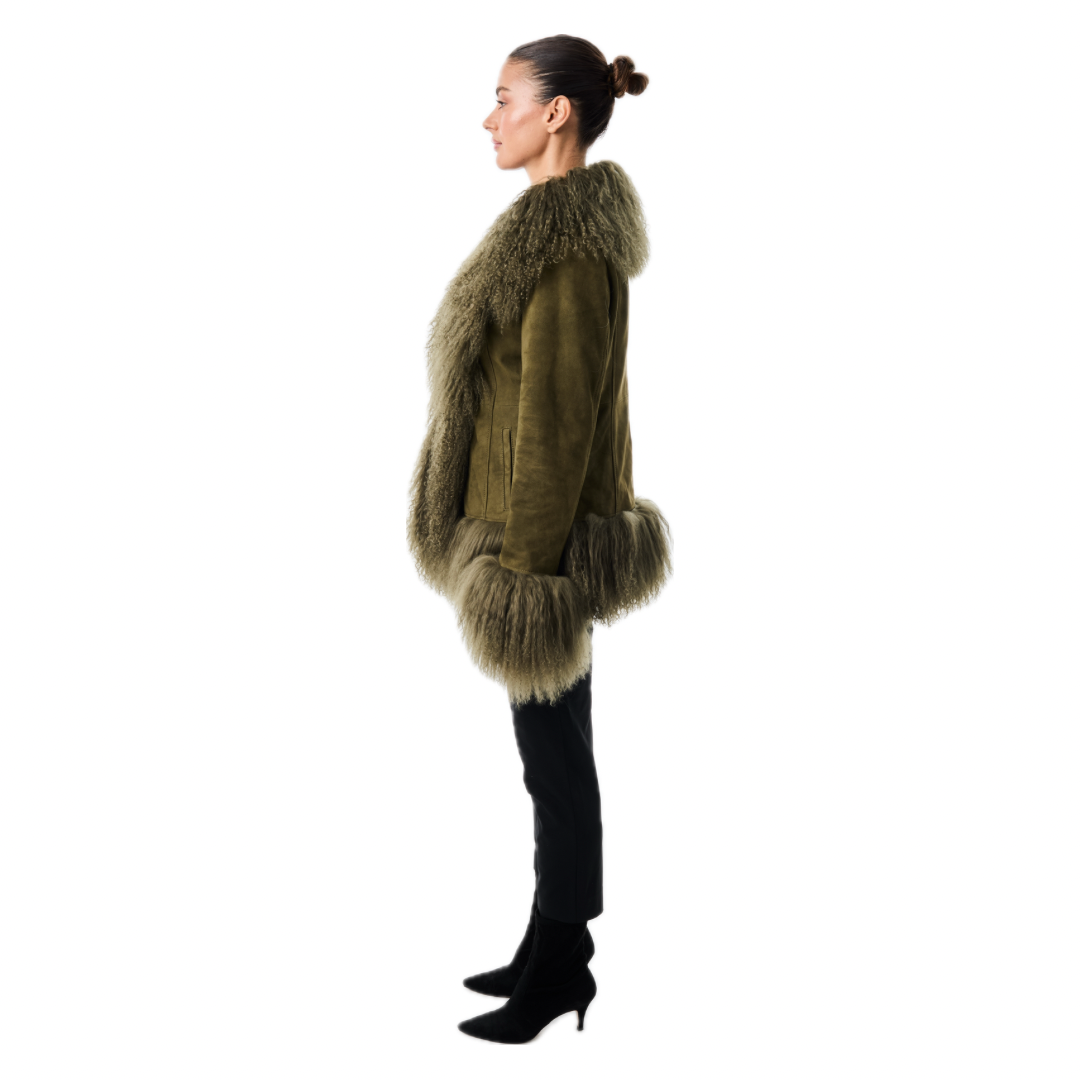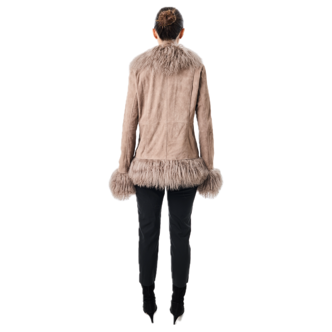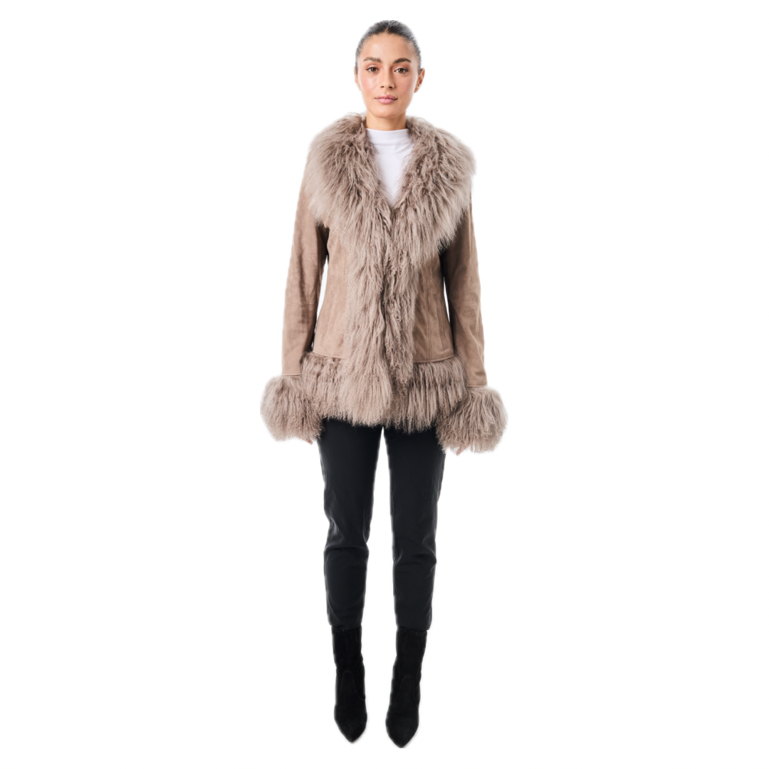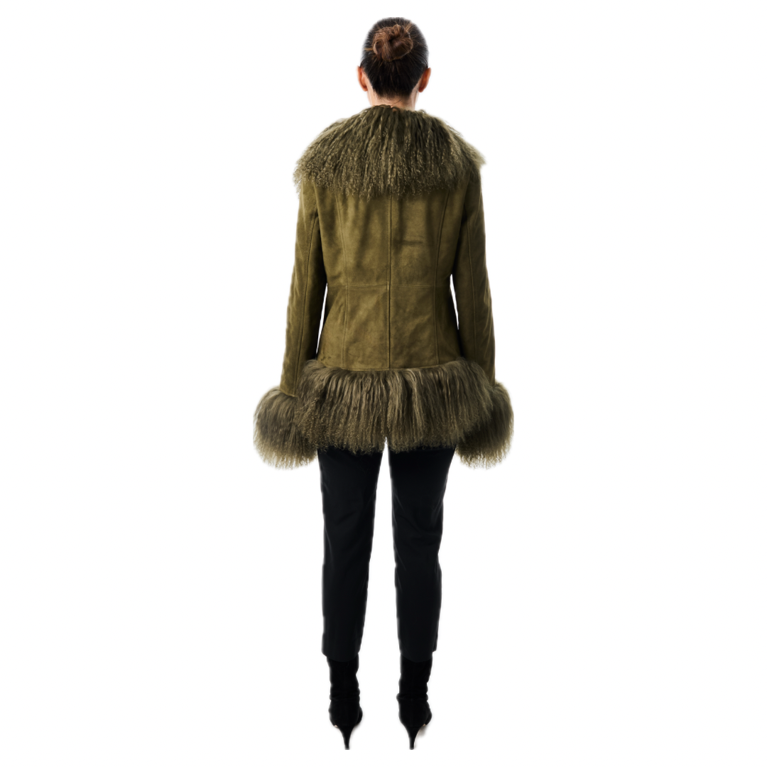 Crafted in premium suede with luxurious Mongolian shearling trim collar. Perfect to pair with a dress or a tee with denim jeans, the options are endless with this dreamy Afghan-inspired coat that is truly so sophisticated yet versatile and timeless! As each piece is handmade to order, please allow 3-4 weeks for delivery.
