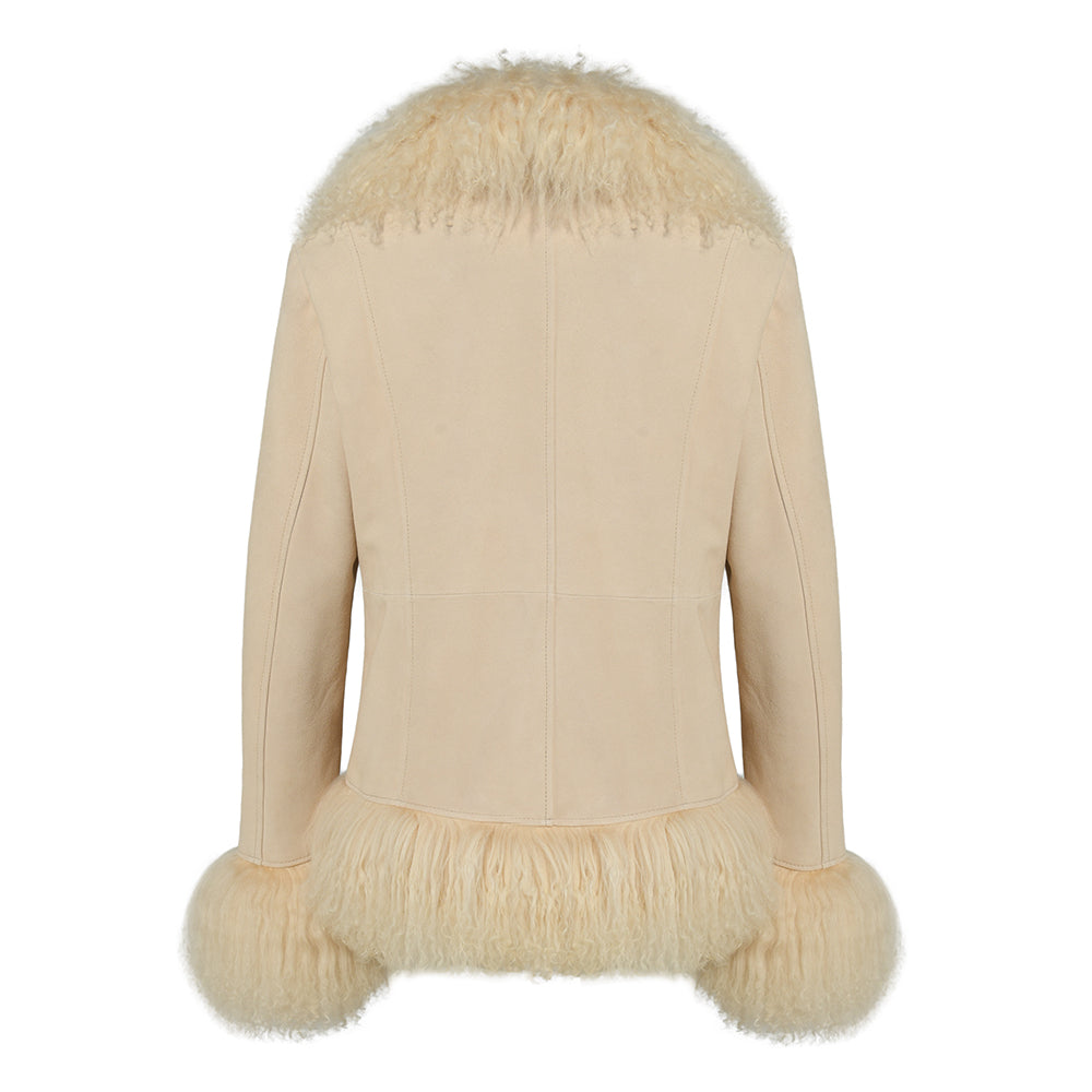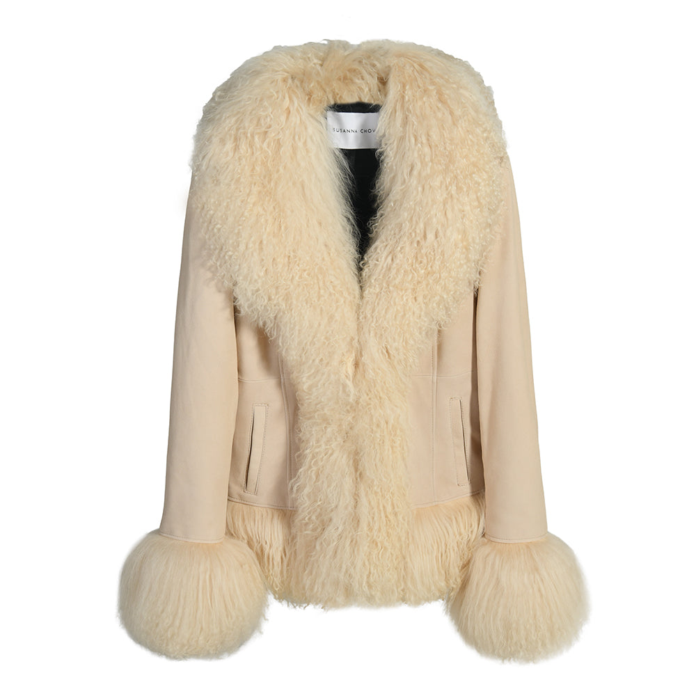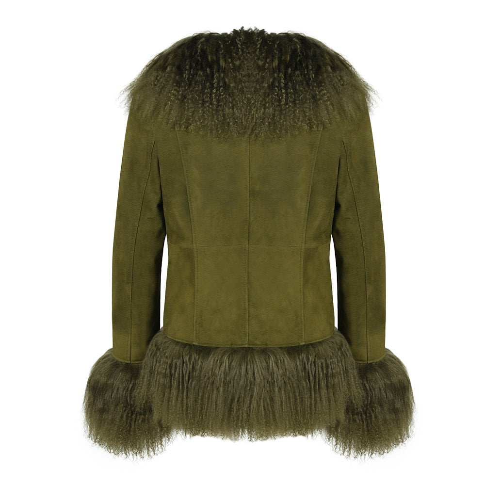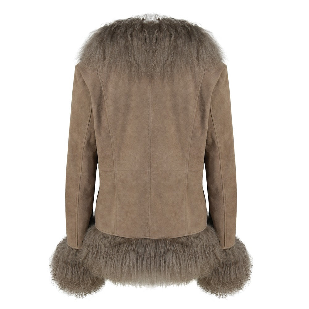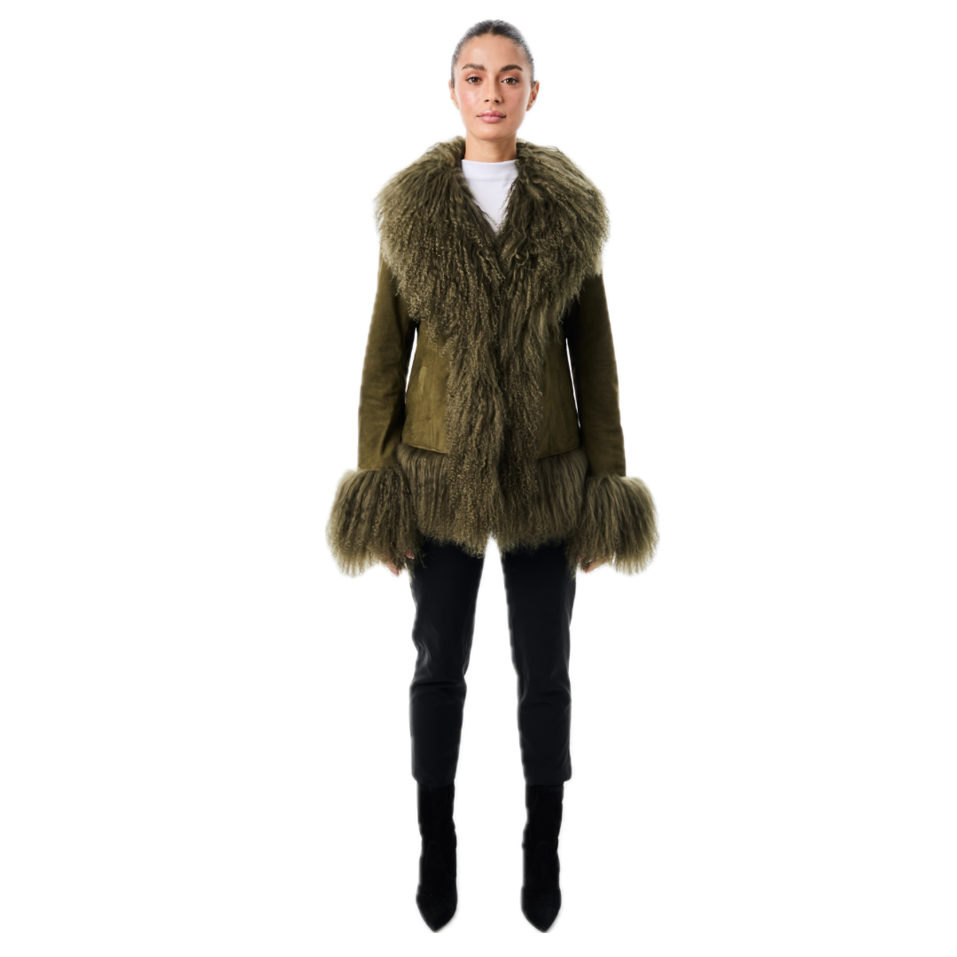 Crafted in premium suede with luxurious Mongolian shearling trim collar. Perfect to pair with a dress or a tee with denim jeans, the options are endless with this dreamy Afghan-inspired coat that is truly so sophisticated yet versatile and timeless! As each piece is handmade to order, please allow 3-4 weeks for delivery.