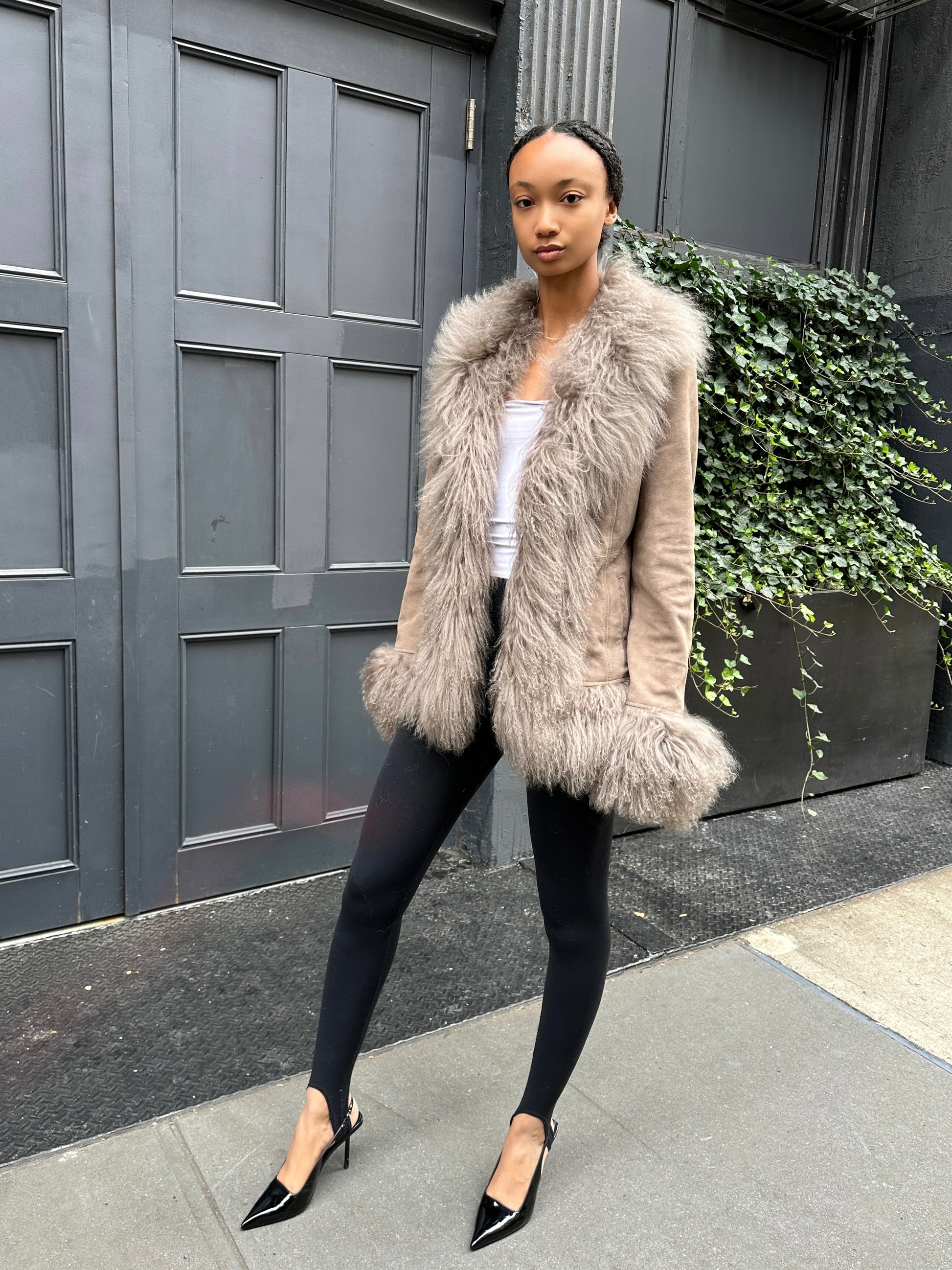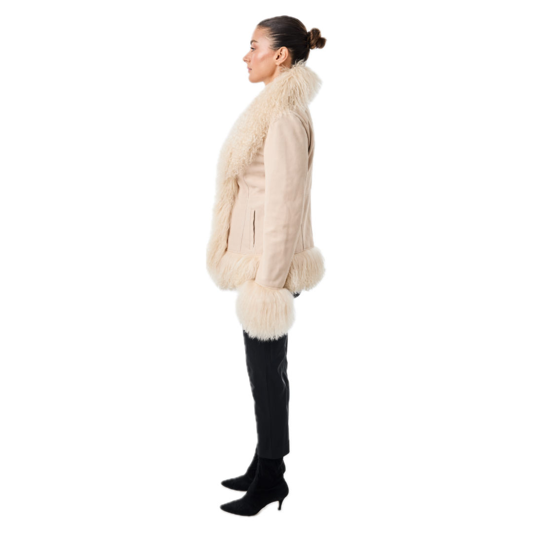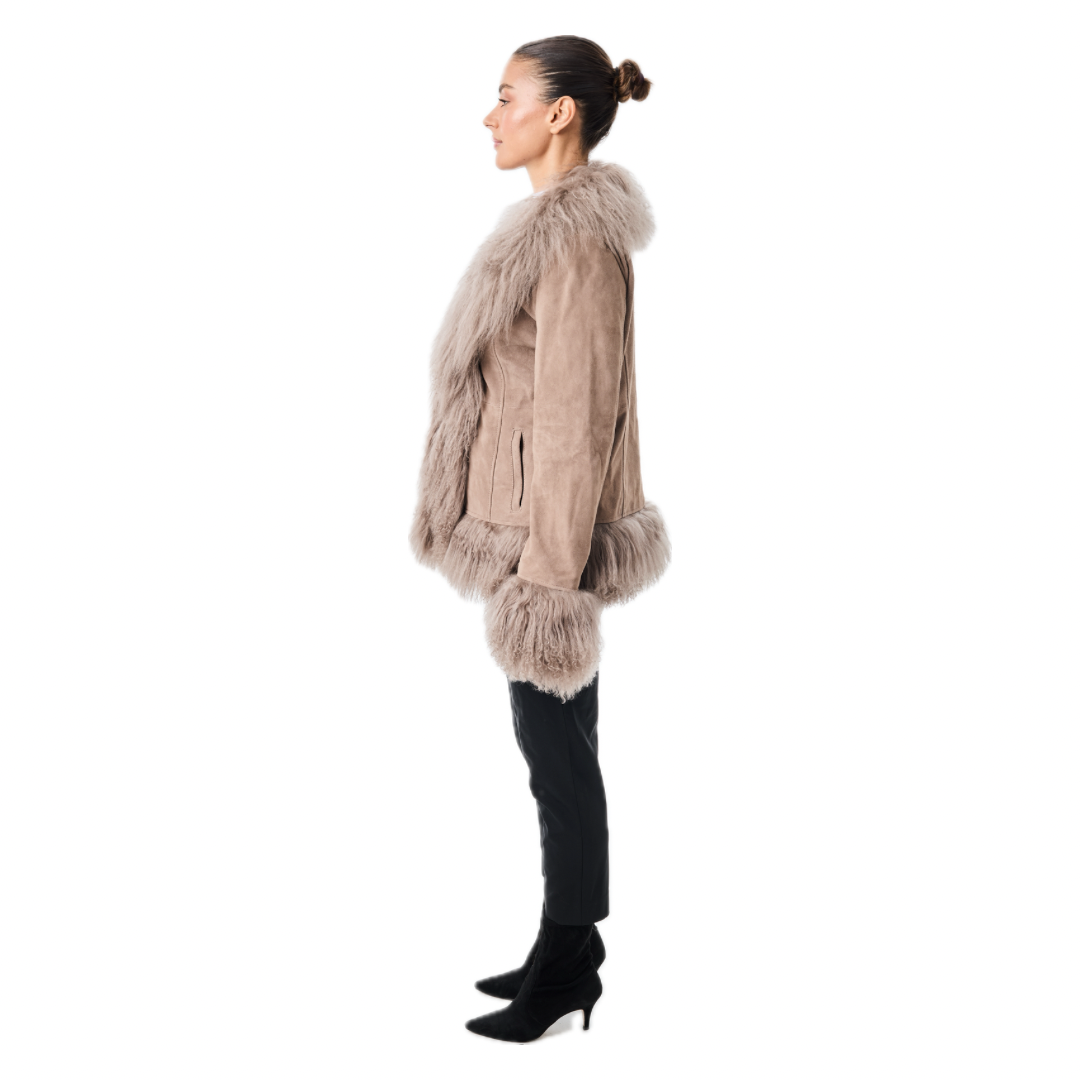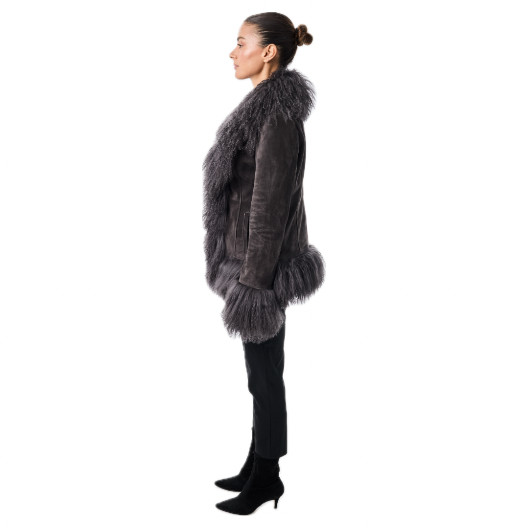 Crafted in premium suede with luxurious Mongolian shearling trim collar. Perfect to pair with a dress or a tee with denim jeans, the options are endless with this dreamy Afghan-inspired coat that is truly so sophisticated yet versatile and timeless! As each piece is handmade to order, please allow 3-4 weeks for delivery.