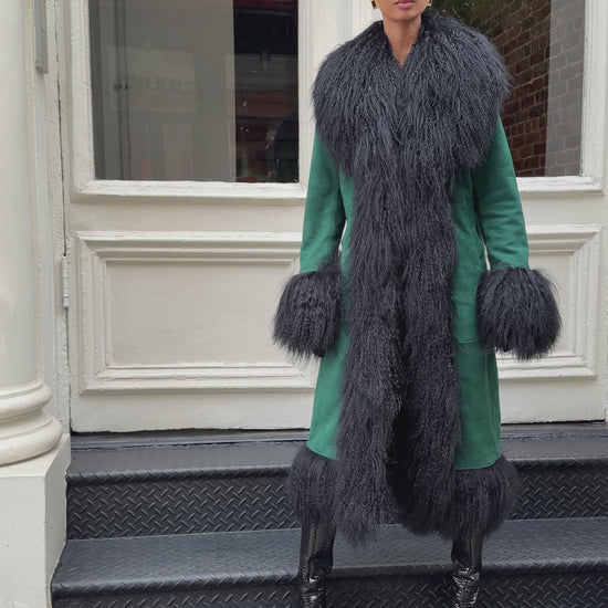 Introducing the big sister to our iconic Dorothy coat! Features the softest suede and will keep you warm while still looking so chic. Perfect to pair with a dress or a tee with denim jeans. The options are endless with this dreamy Afghan-inspired coat that is truly so sophisticated yet versatile and timeless! As each piece is handmade to order, please allow 3-4 weeks for delivery.