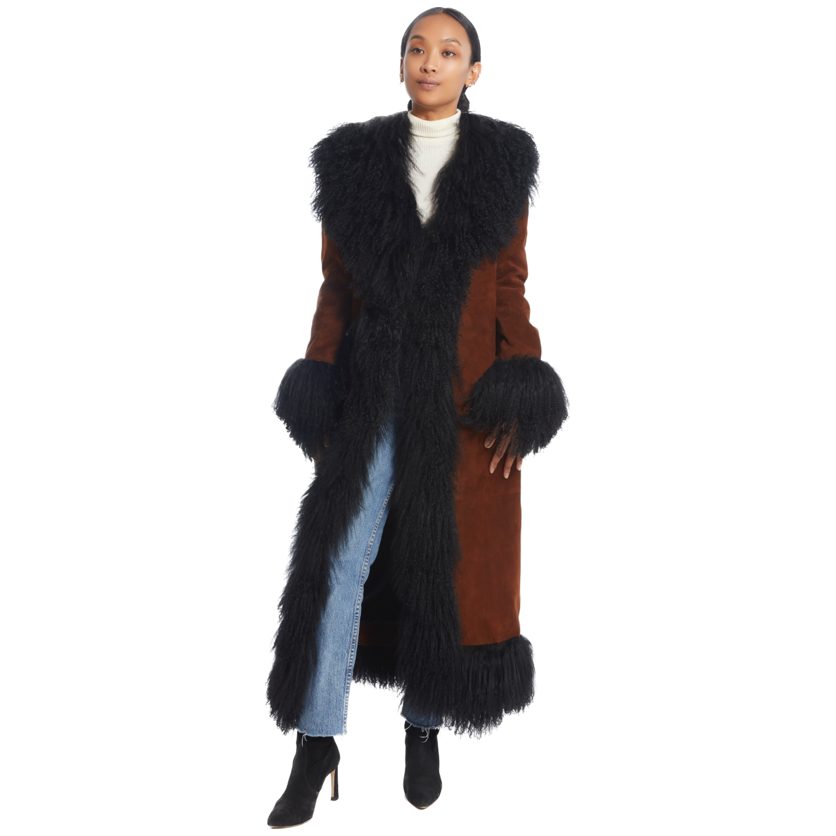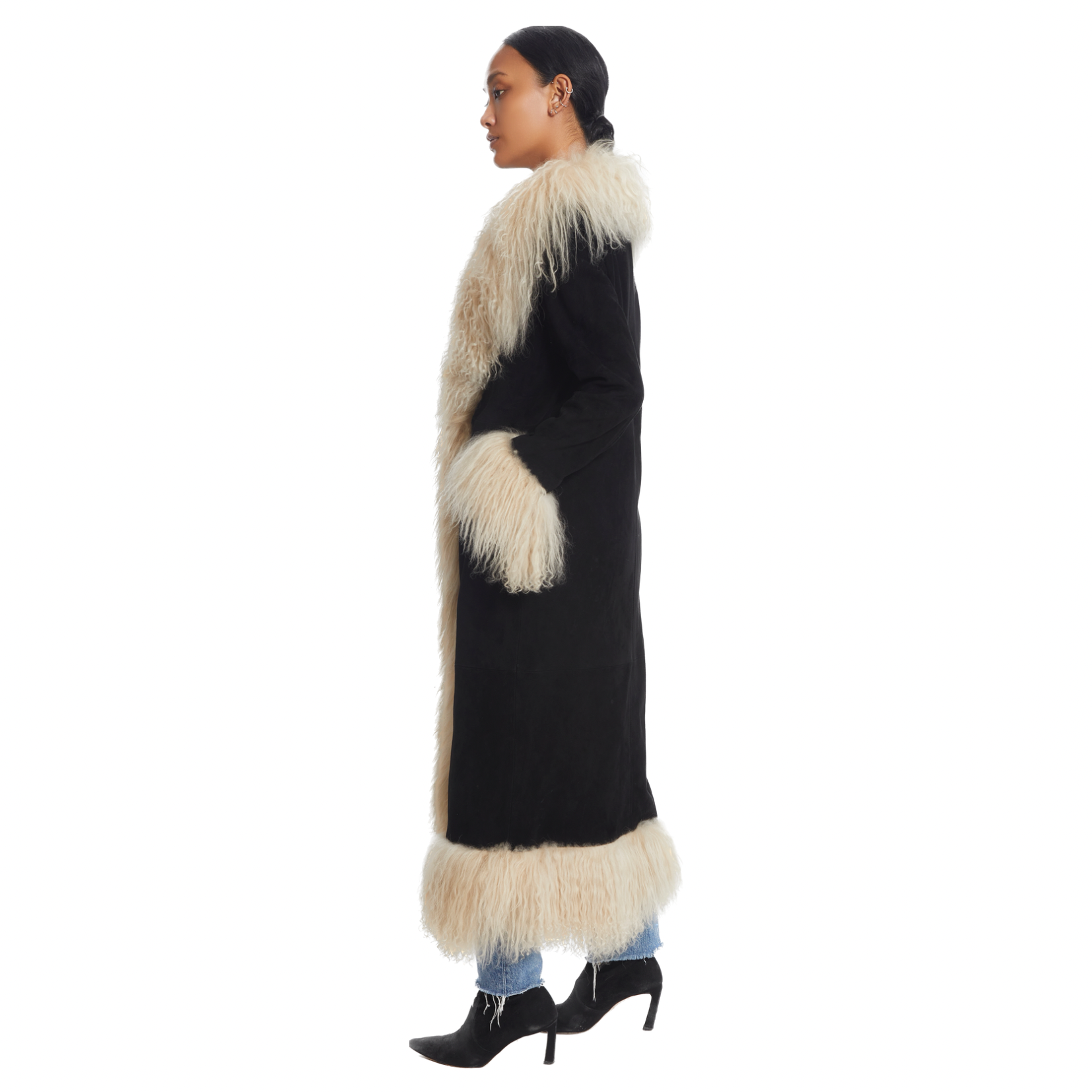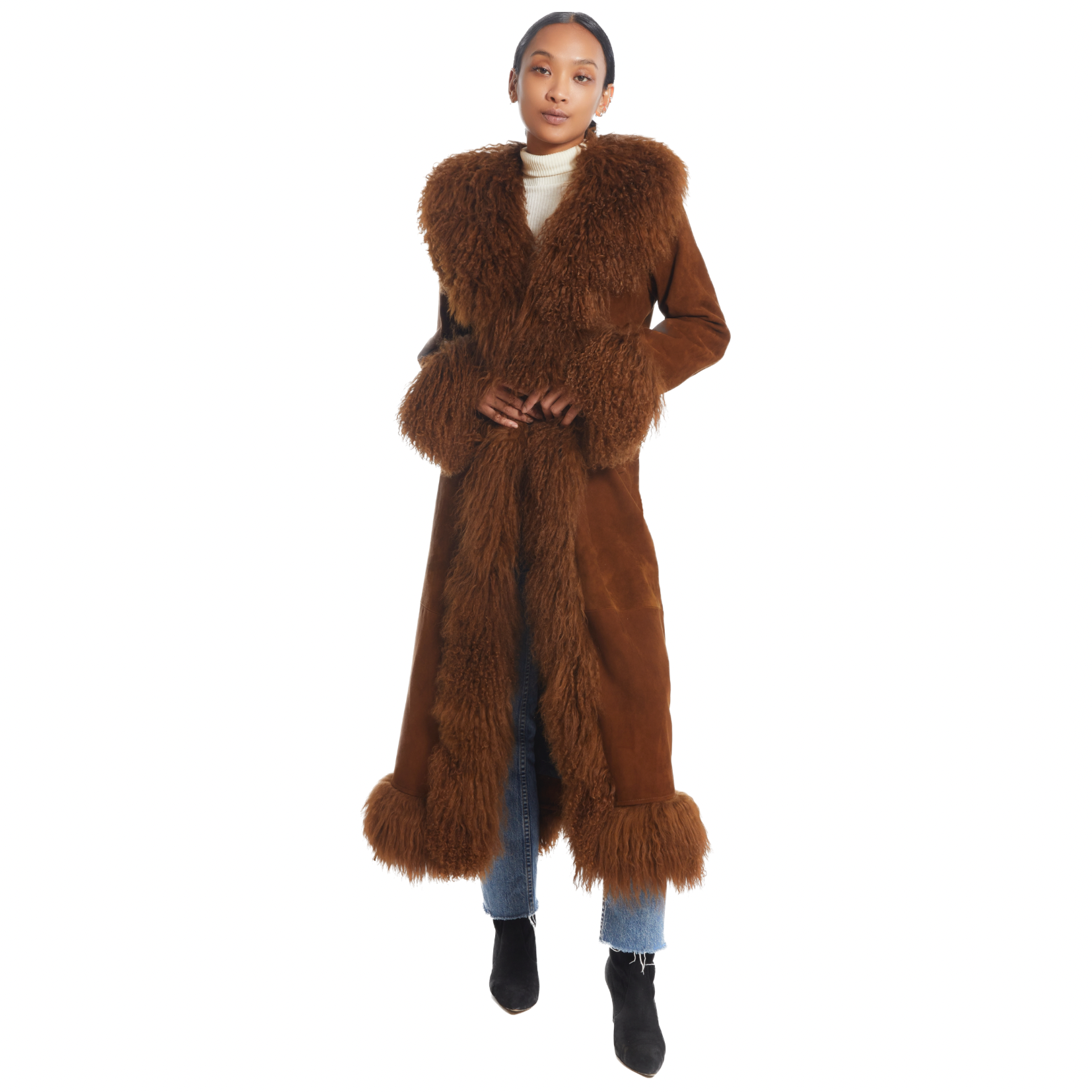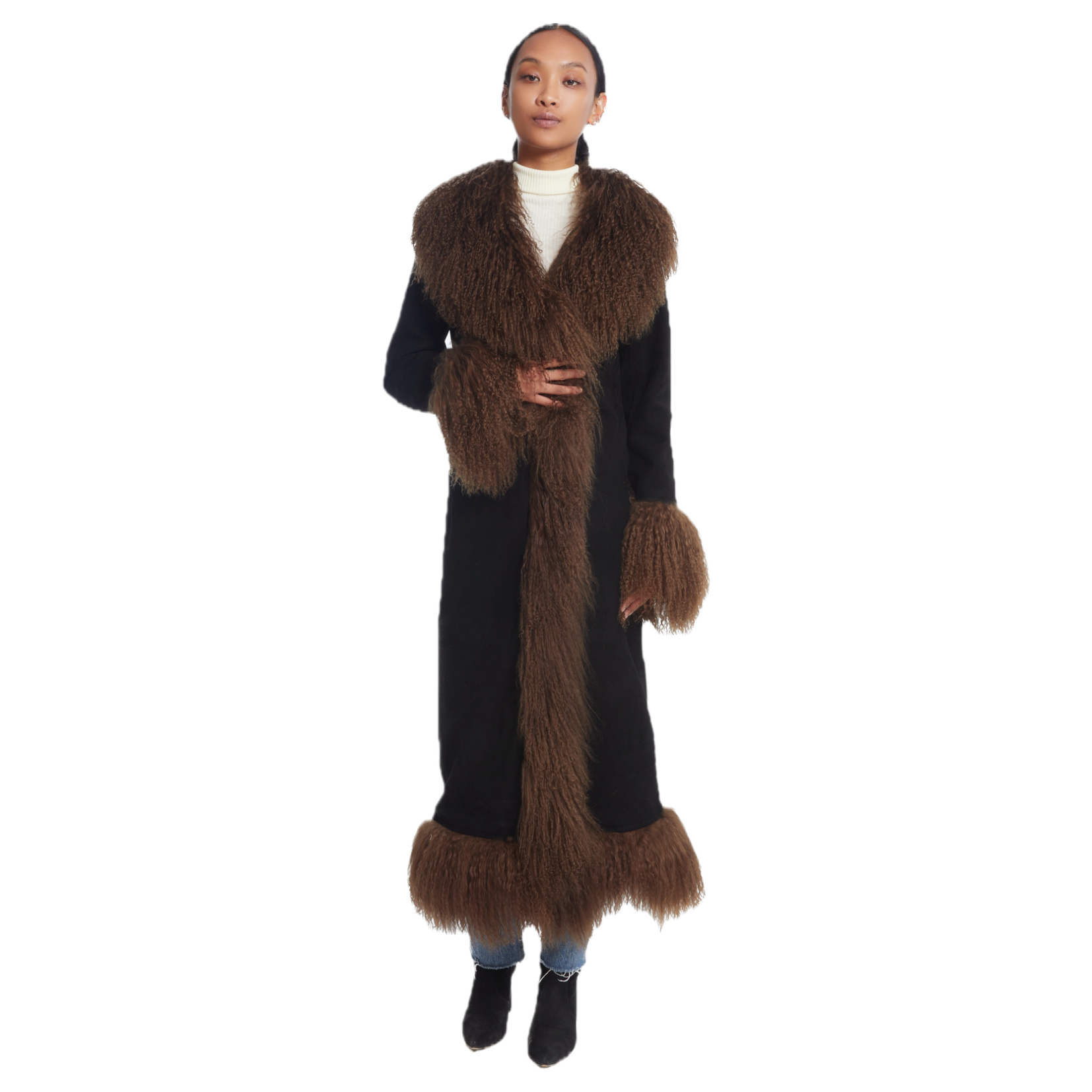 Introducing the big sister to our iconic Dorothy coat! Features the softest suede and will keep you warm while still looking so chic. Perfect to pair with a dress or a tee with denim jeans. The options are endless with this dreamy Afghan-inspired coat that is truly so sophisticated yet versatile and timeless! As each piece is handmade to order, please allow 3-4 weeks for delivery.