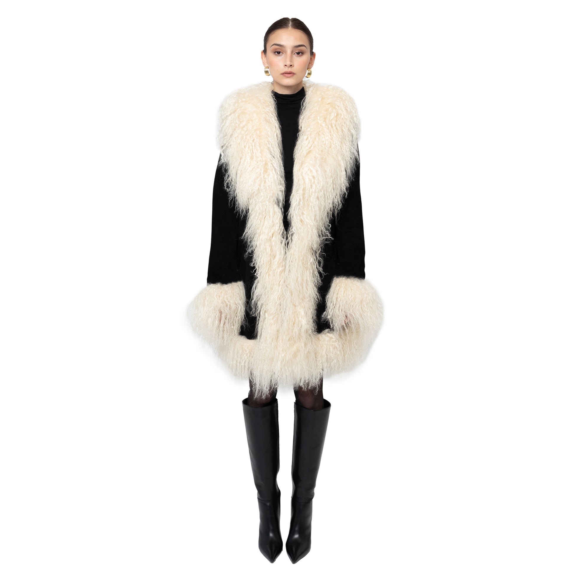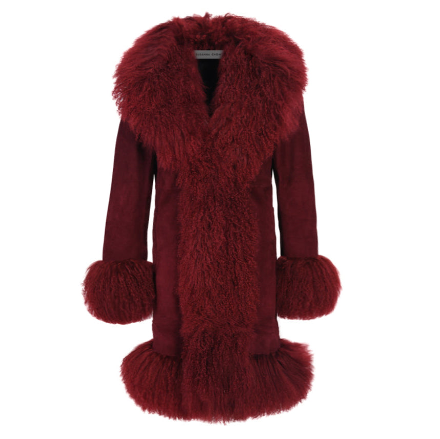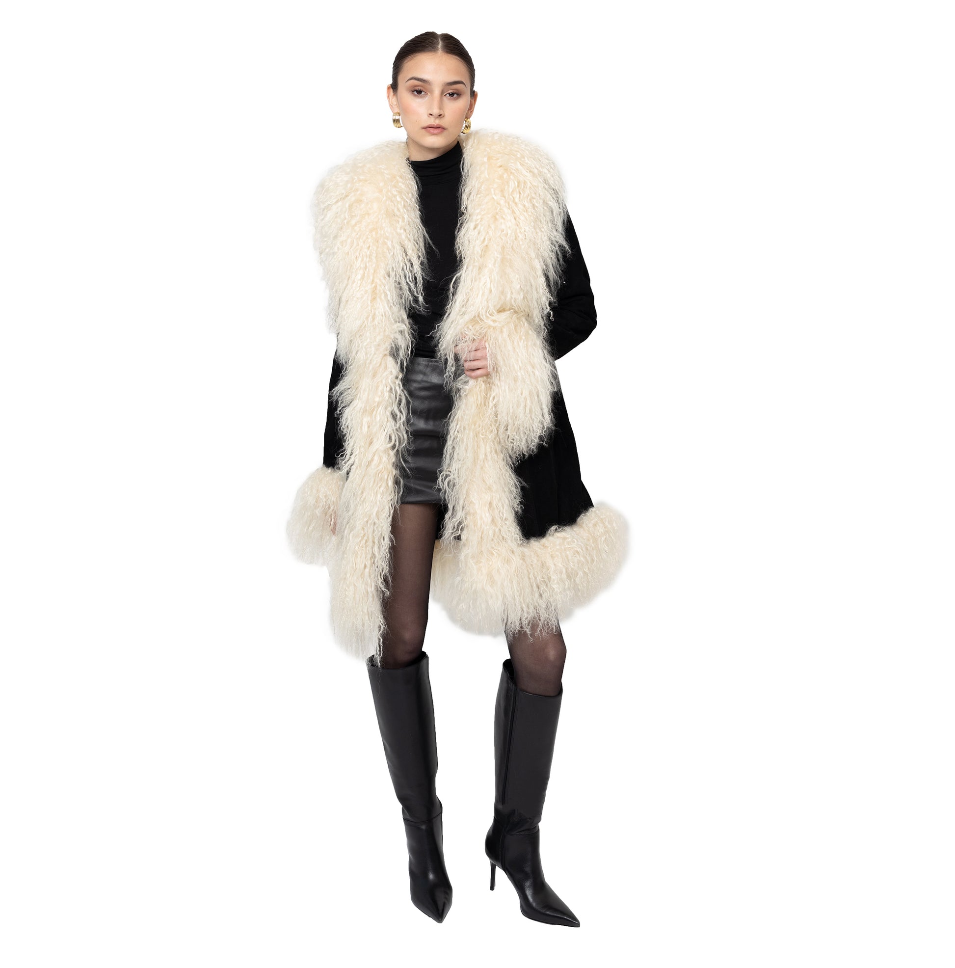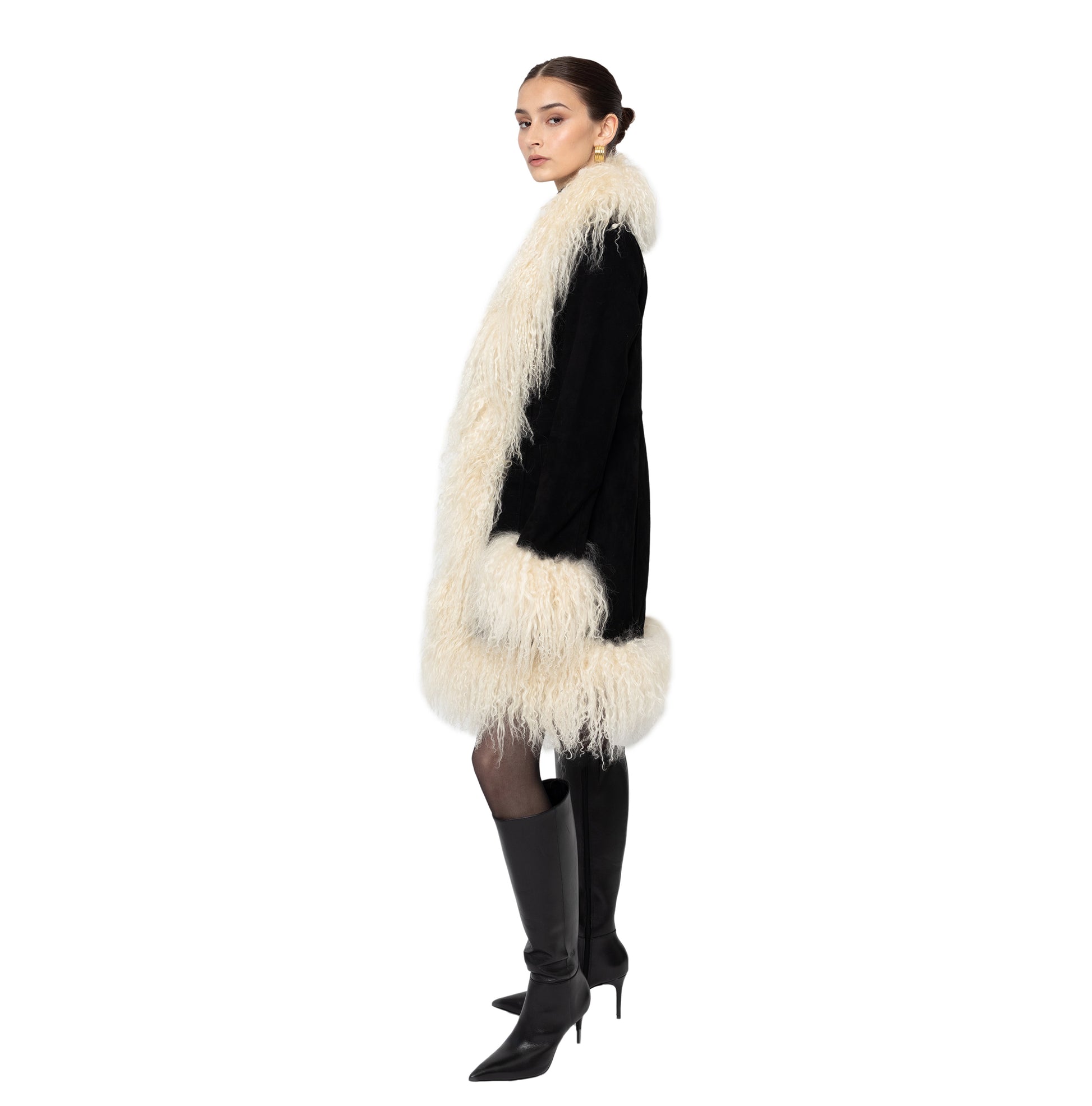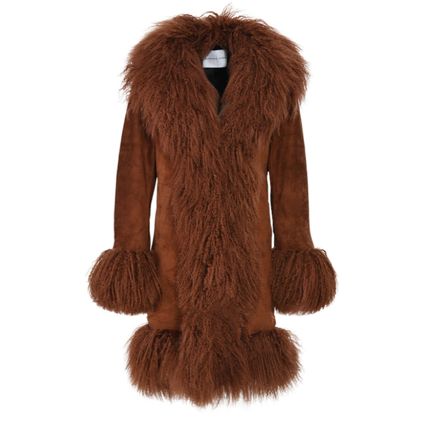 Crafted in premium suede with luxurious Mongolian shearling trim collar. Perfect to pair with a dress or a tee with denim jeans, the options are endless with this dreamy Afghan-inspired coat that is truly so sophisticated yet versatile and timeless! As each piece is handmade to order, please allow 3-4 weeks for delivery.