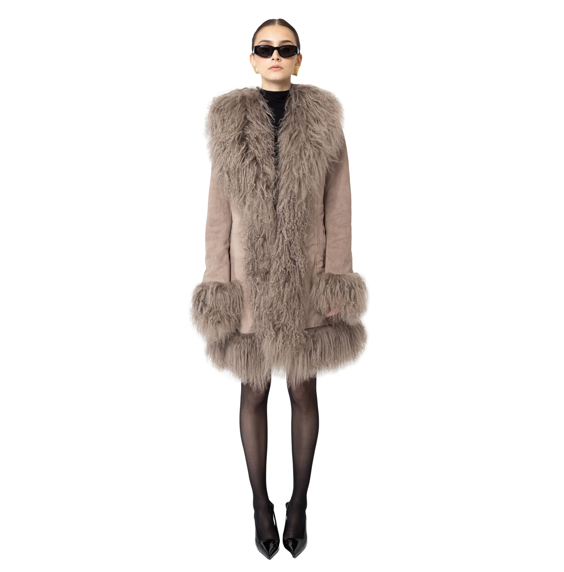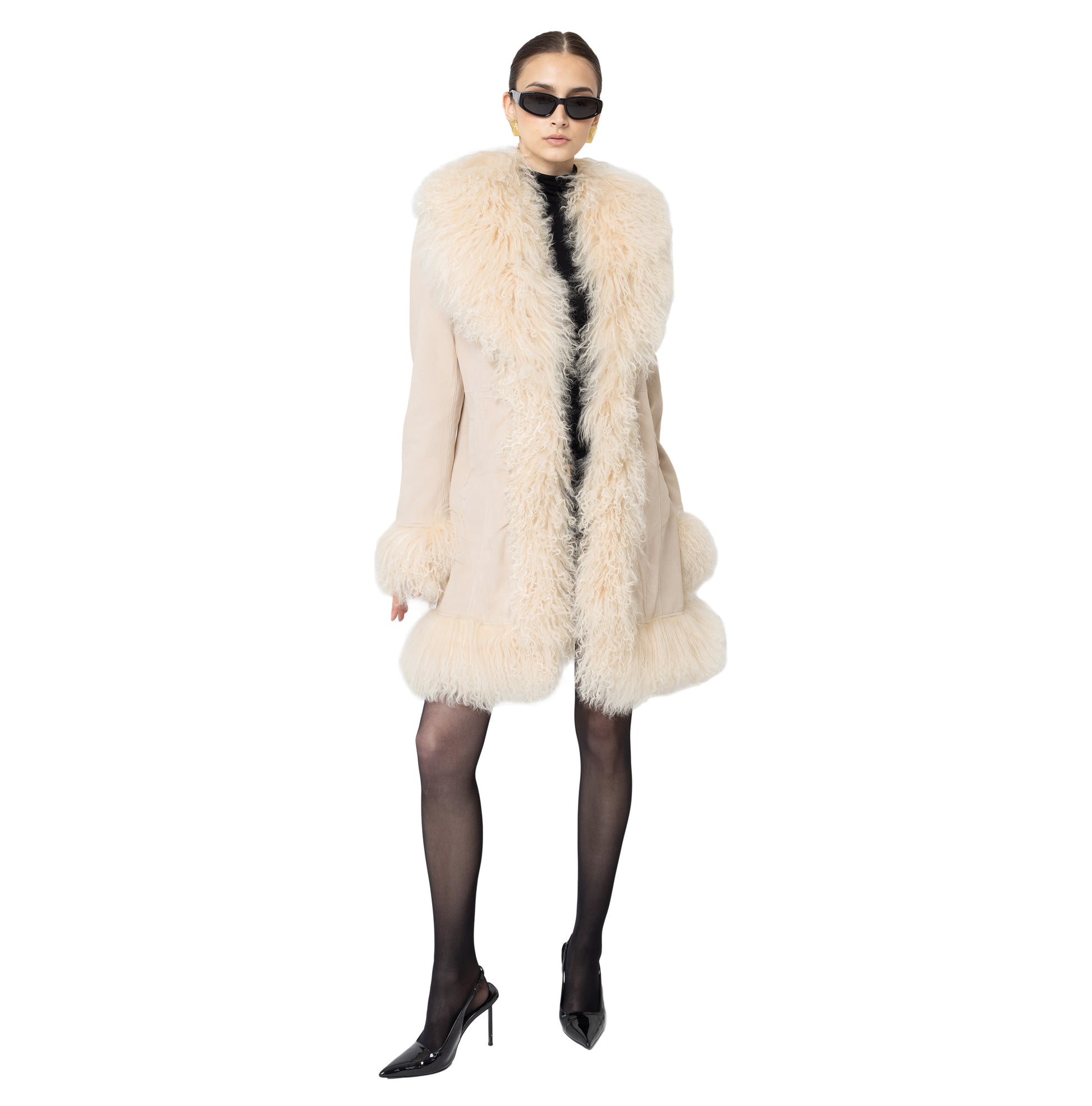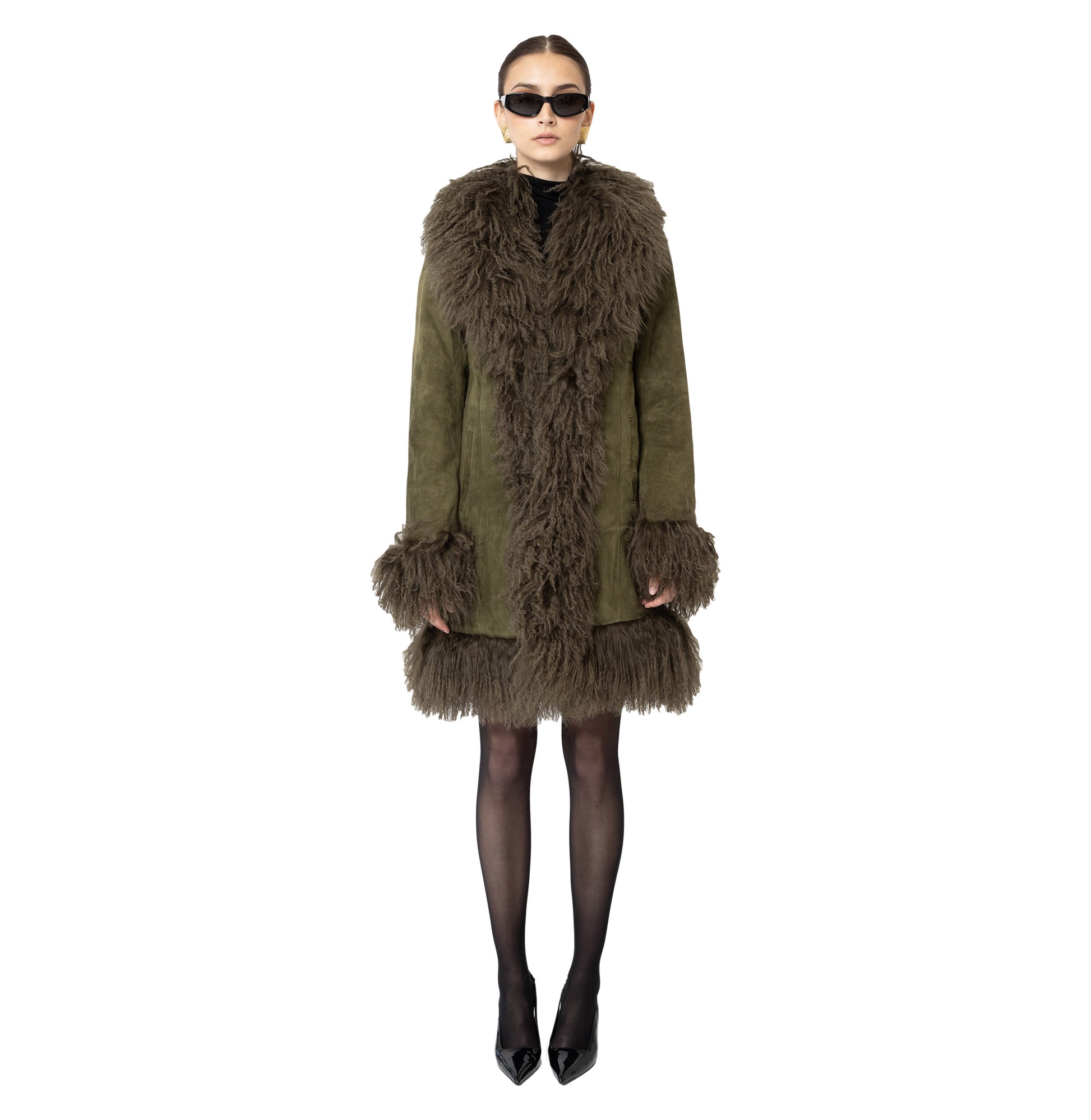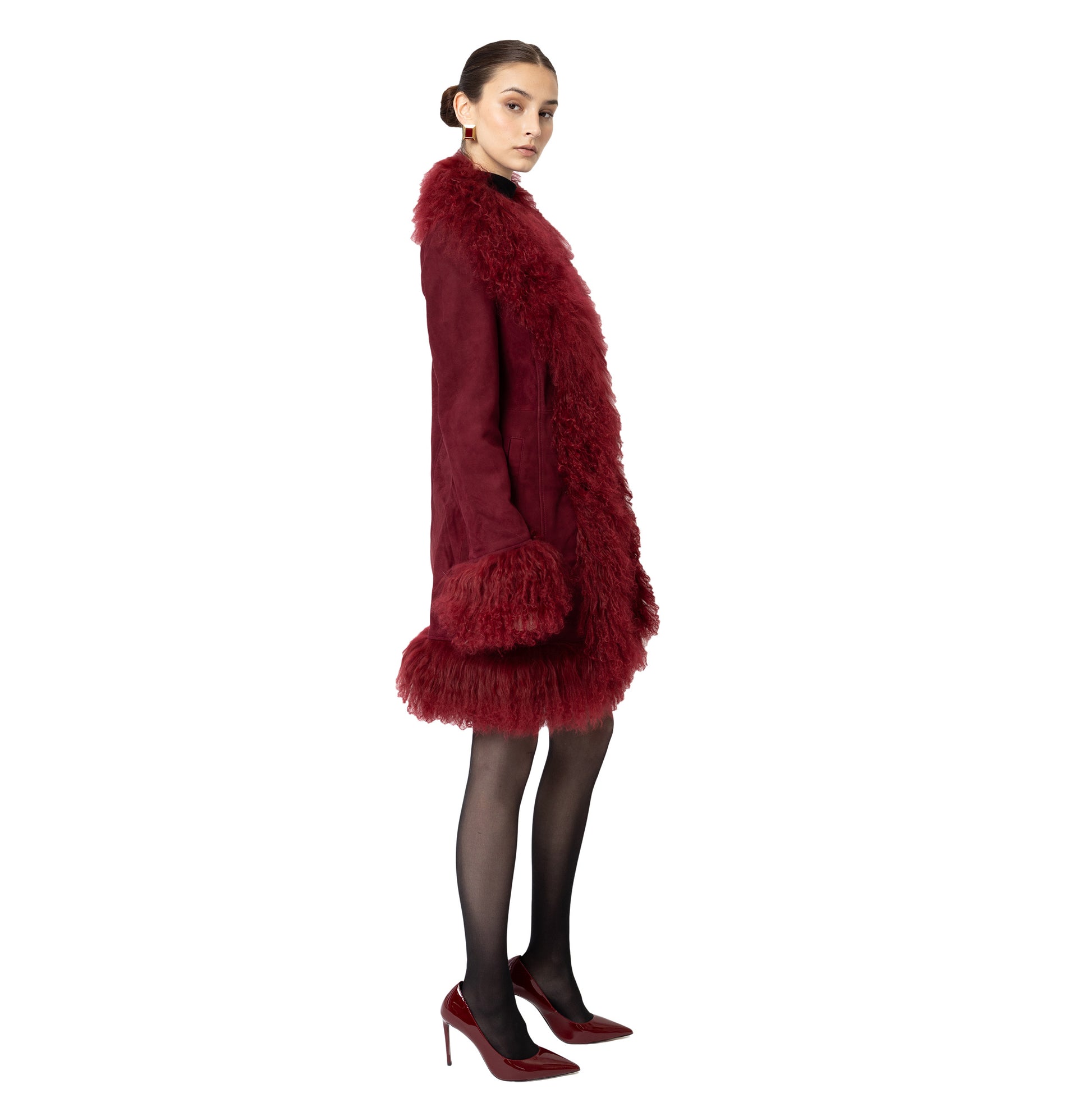 Crafted in premium suede with luxurious Mongolian shearling trim collar. Perfect to pair with a dress or a tee with denim jeans, the options are endless with this dreamy Afghan-inspired coat that is truly so sophisticated yet versatile and timeless! As each piece is handmade to order, please allow 3-4 weeks for delivery.