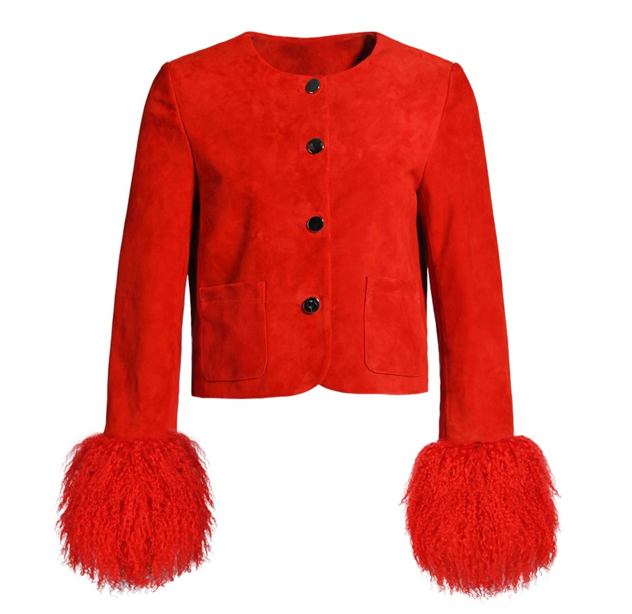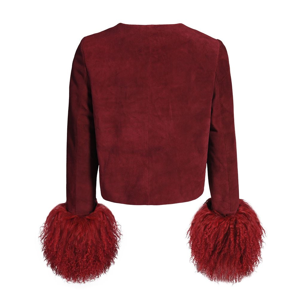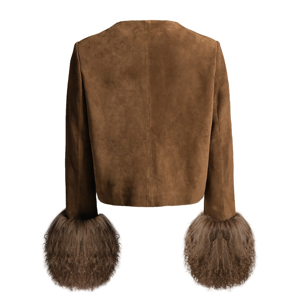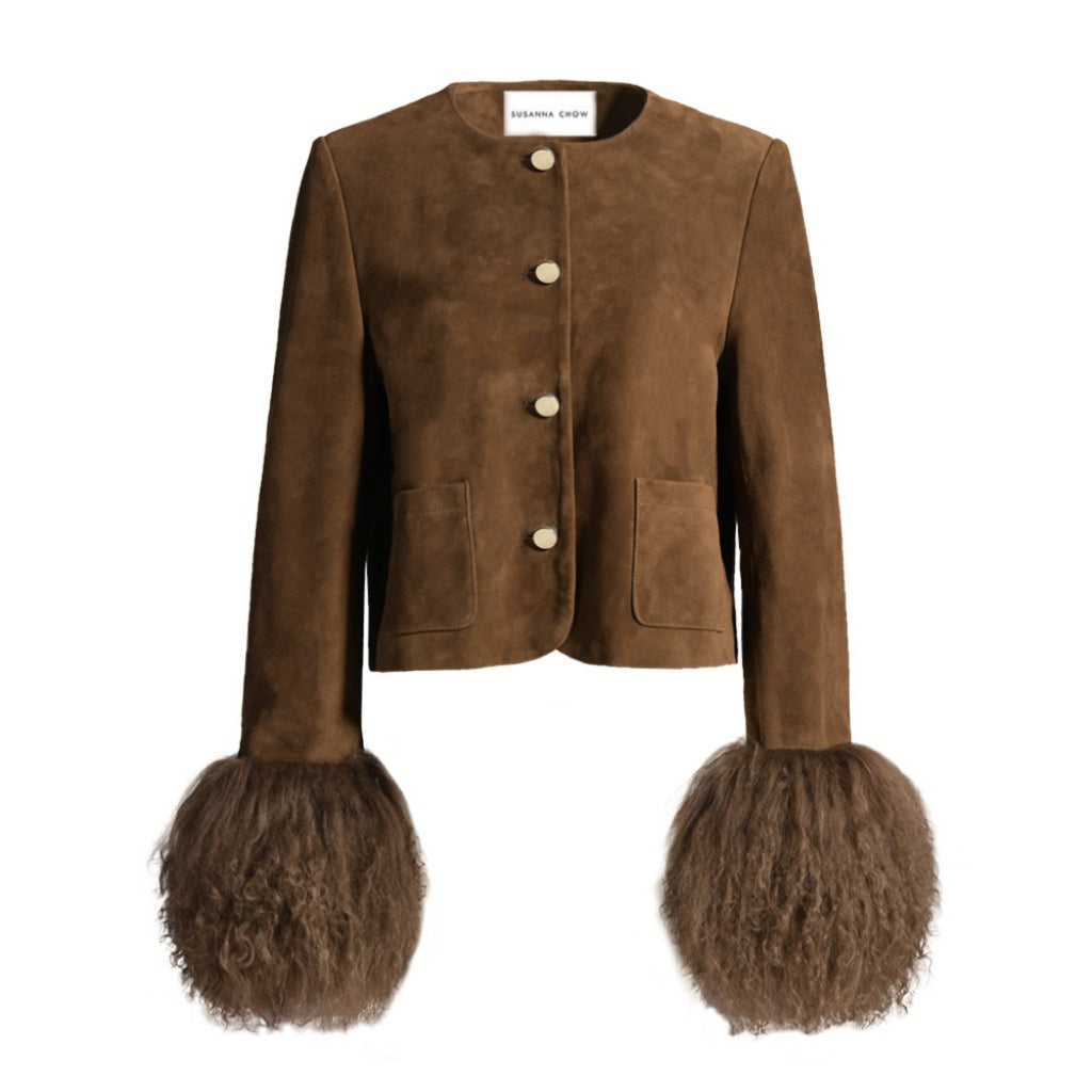 Introducing the Frida jacket that’s effortlessly elegant and guaranteed to keep you looking chic all season long. Perfect to pair over a dress or dress down with jeans. Features removable shearling trim cuffs, exterior pockets. Runs true to size. As each piece is handmade to order, please allow 2-3 weeks for delivery.