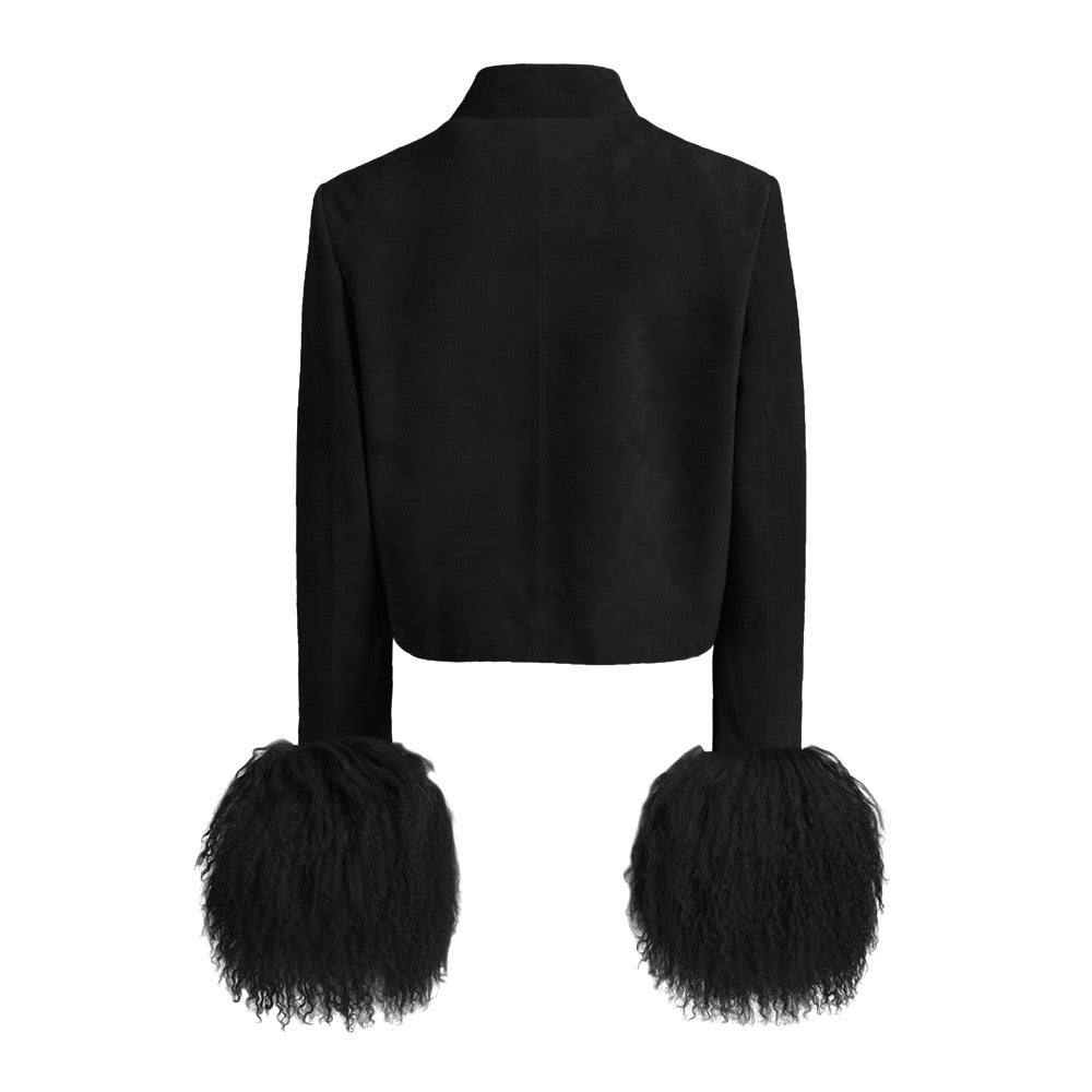 Leighton Shearling Trim Suede Jacket
