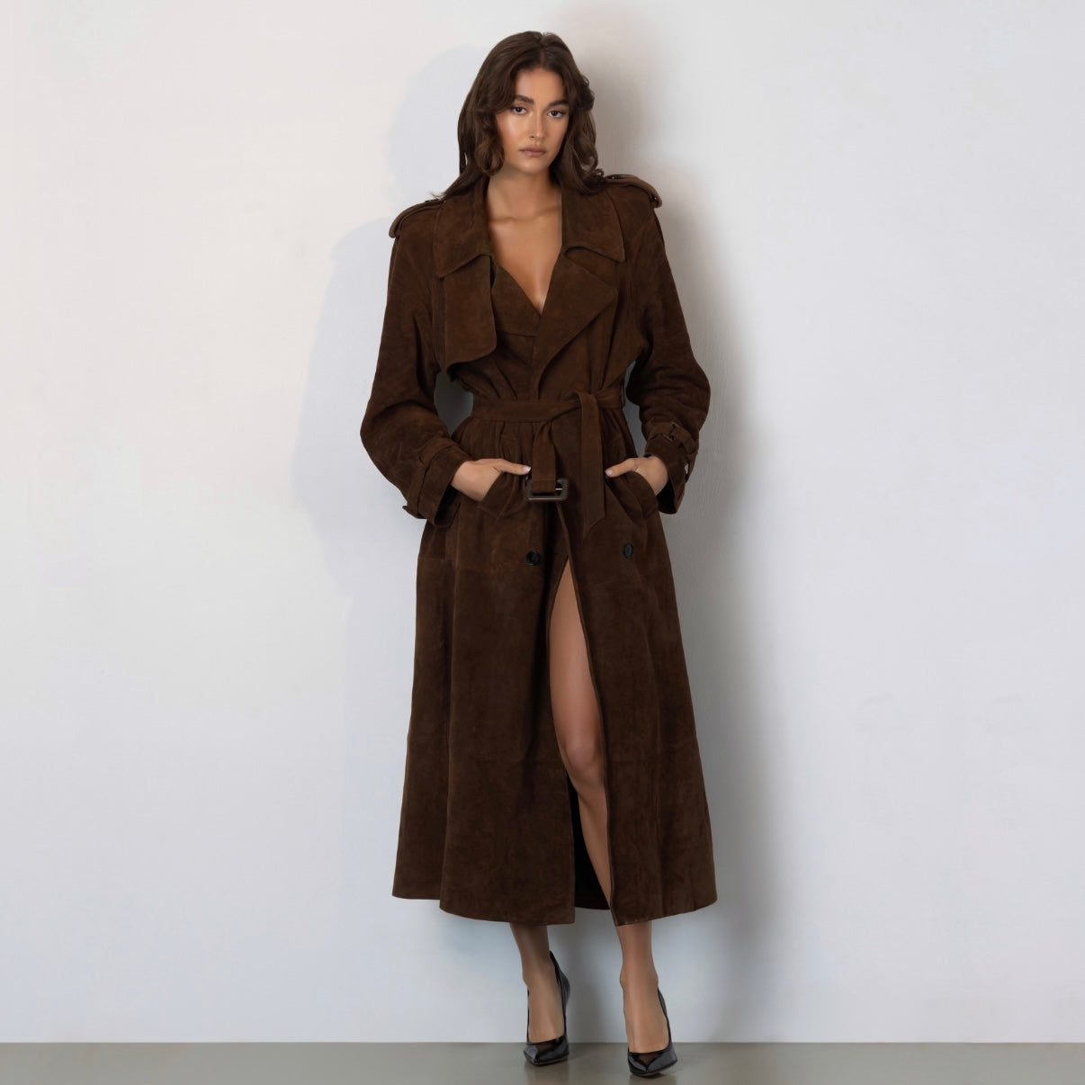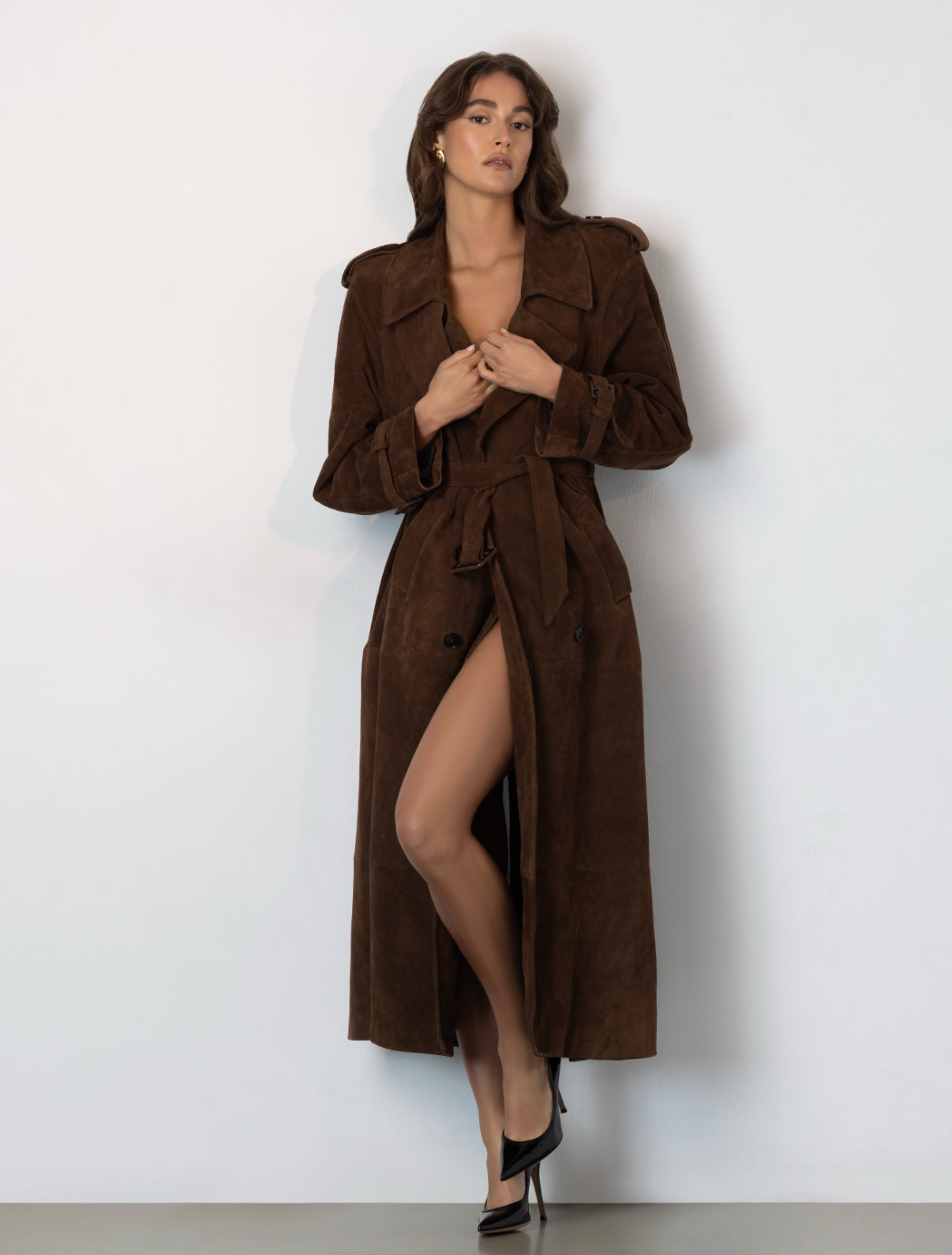 Introducing the Madison suede trench coat. The perfect everyday wardrobe essential to effortlessly elevate your look from day to night. Sign up above to be notified first when this timeless piece arrives online!