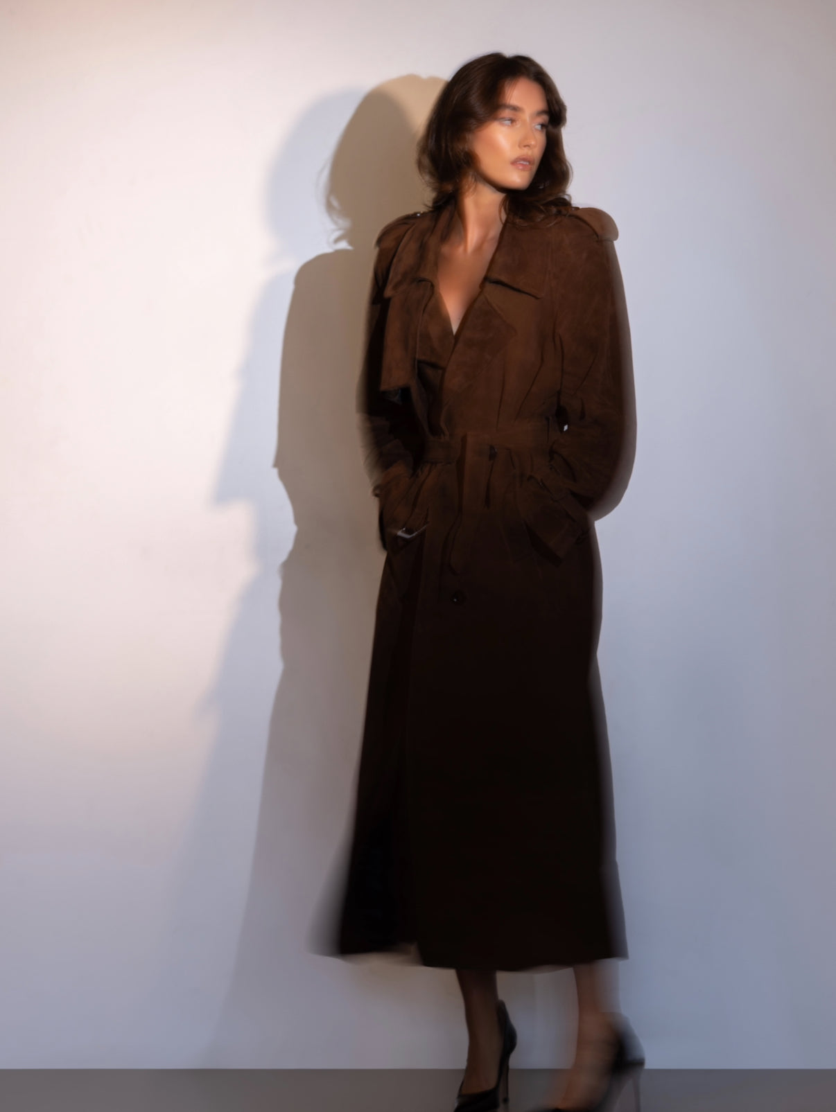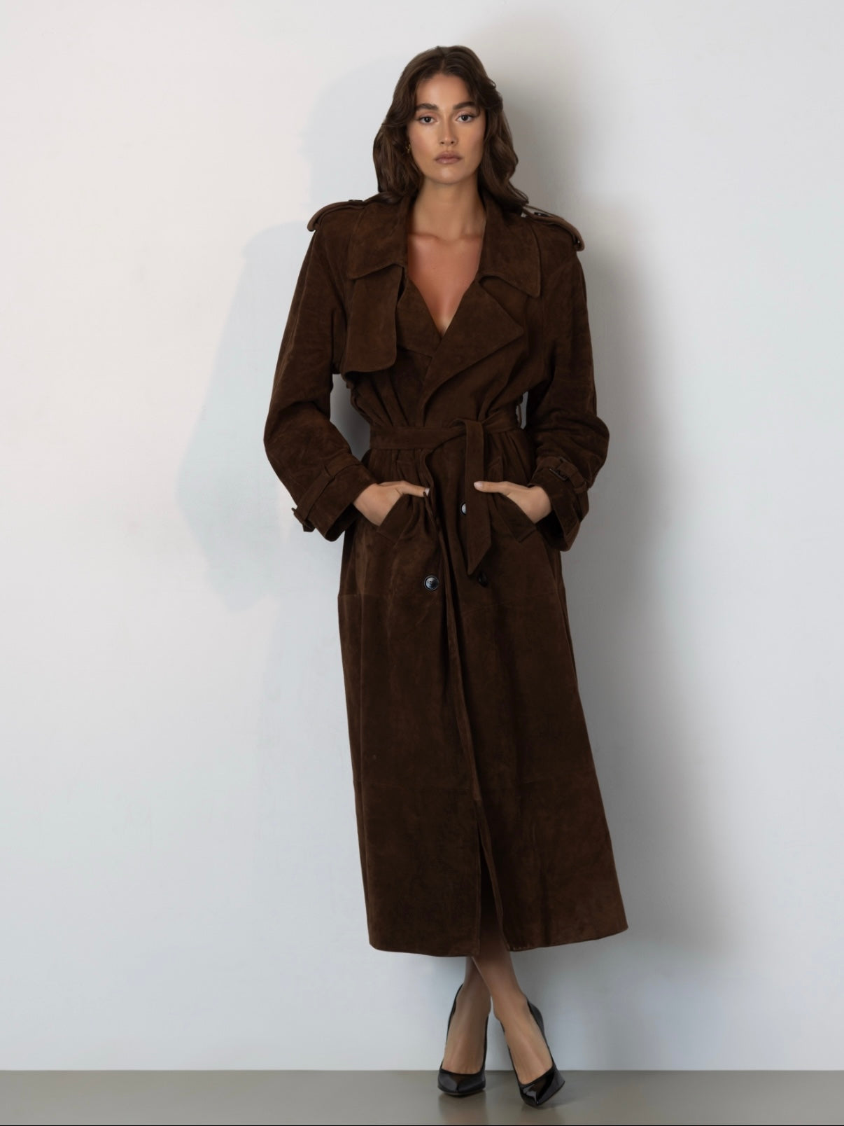 Introducing the Madison suede trench coat. The perfect everyday wardrobe essential to effortlessly elevate your look from day to night. Sign up above to be notified first when this timeless piece arrives online!