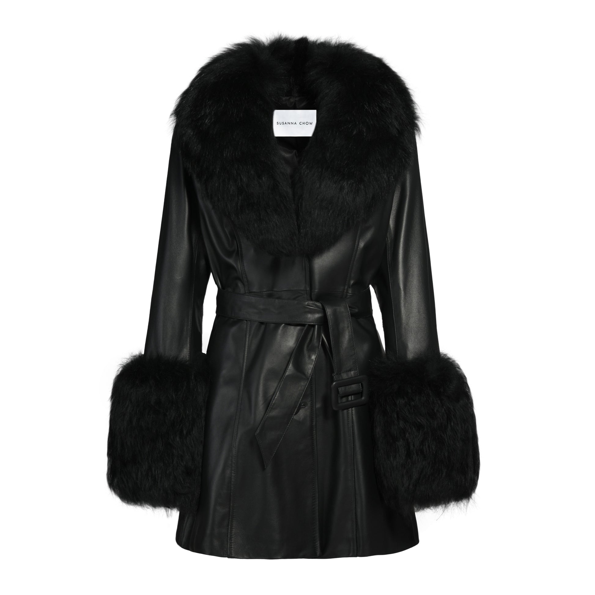 Elegant and sophisticated, the Roxy coat features a detachable shearling collar and cuffs with exterior pockets. Matching belt also included. As each piece is handmade to order, please allow 3-4 weeks for delivery.