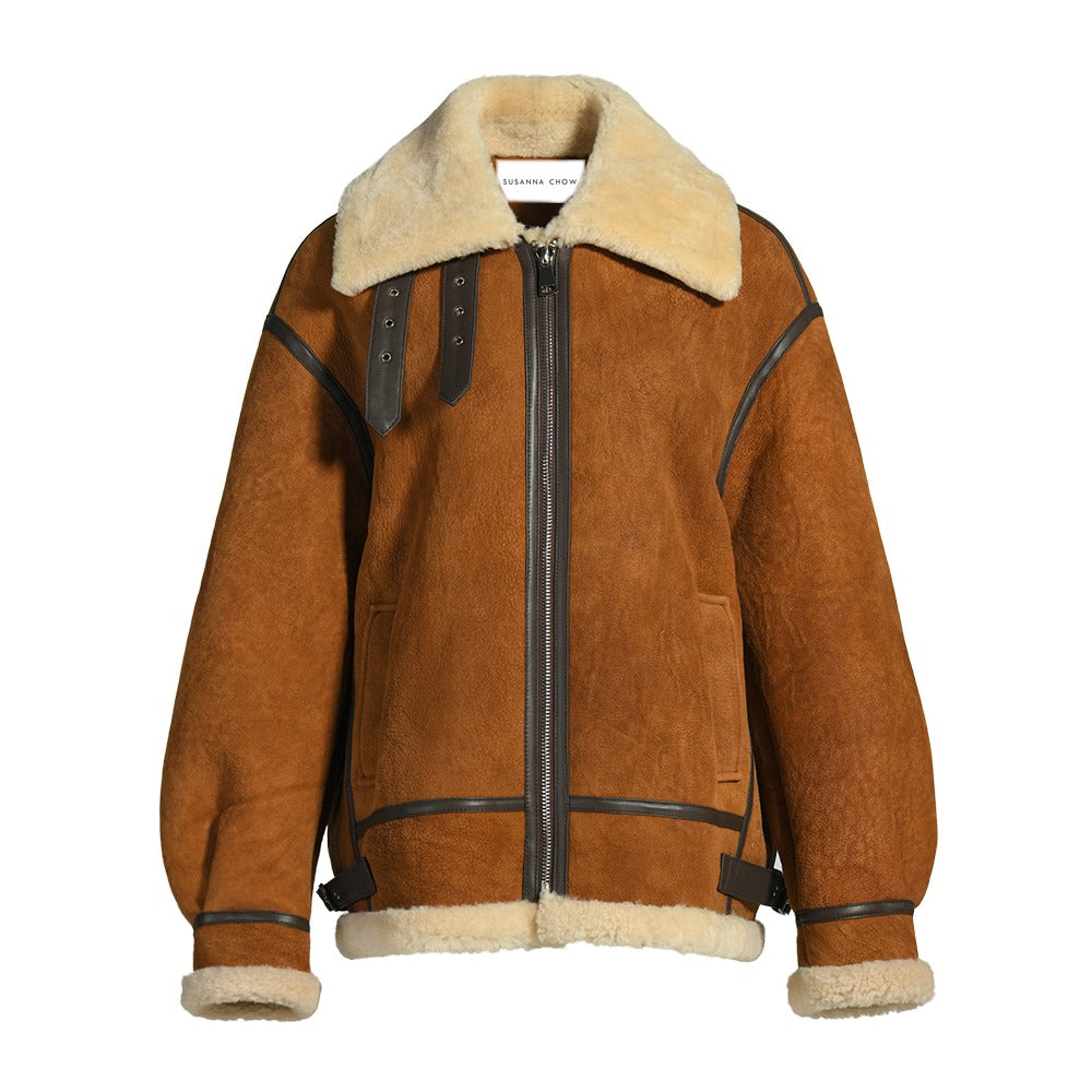 Sienna Shearling Suede Biker Coat