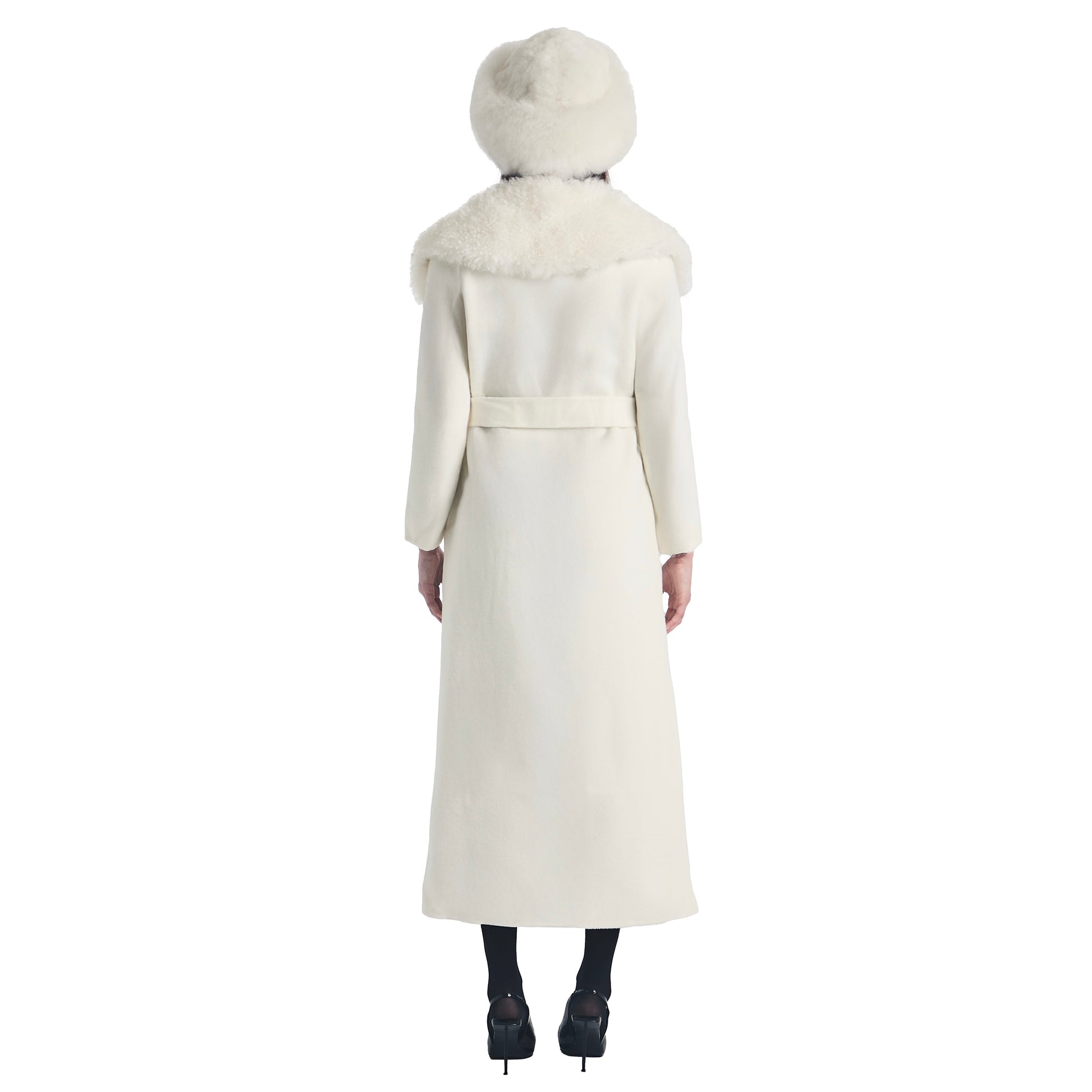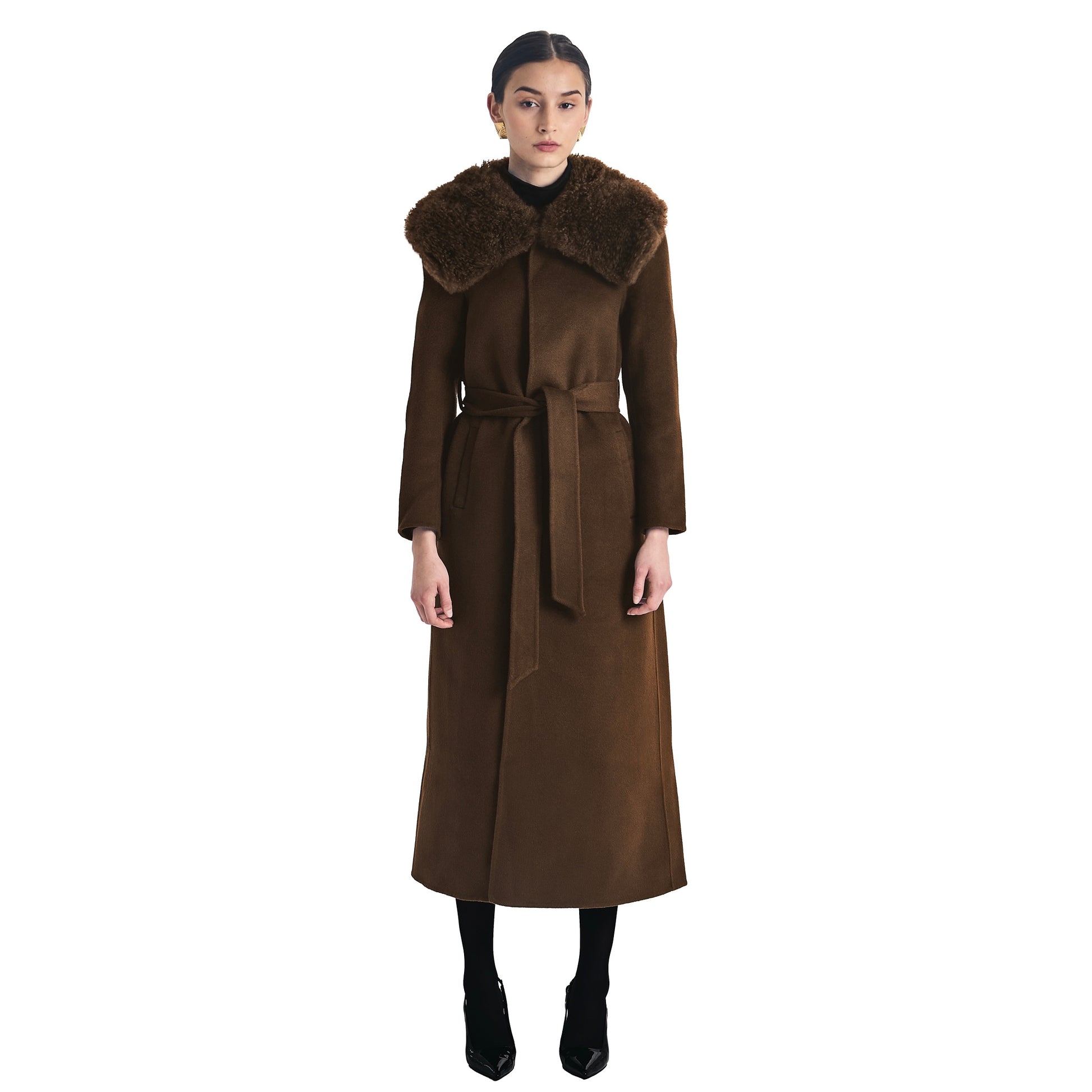 Wrap yourself in glamour this season in the Sloane Cashmere Shearling coat. Features a wide collar and exterior pockets. As each piece is handmade to order, please allow 2-3 weeks for delivery.